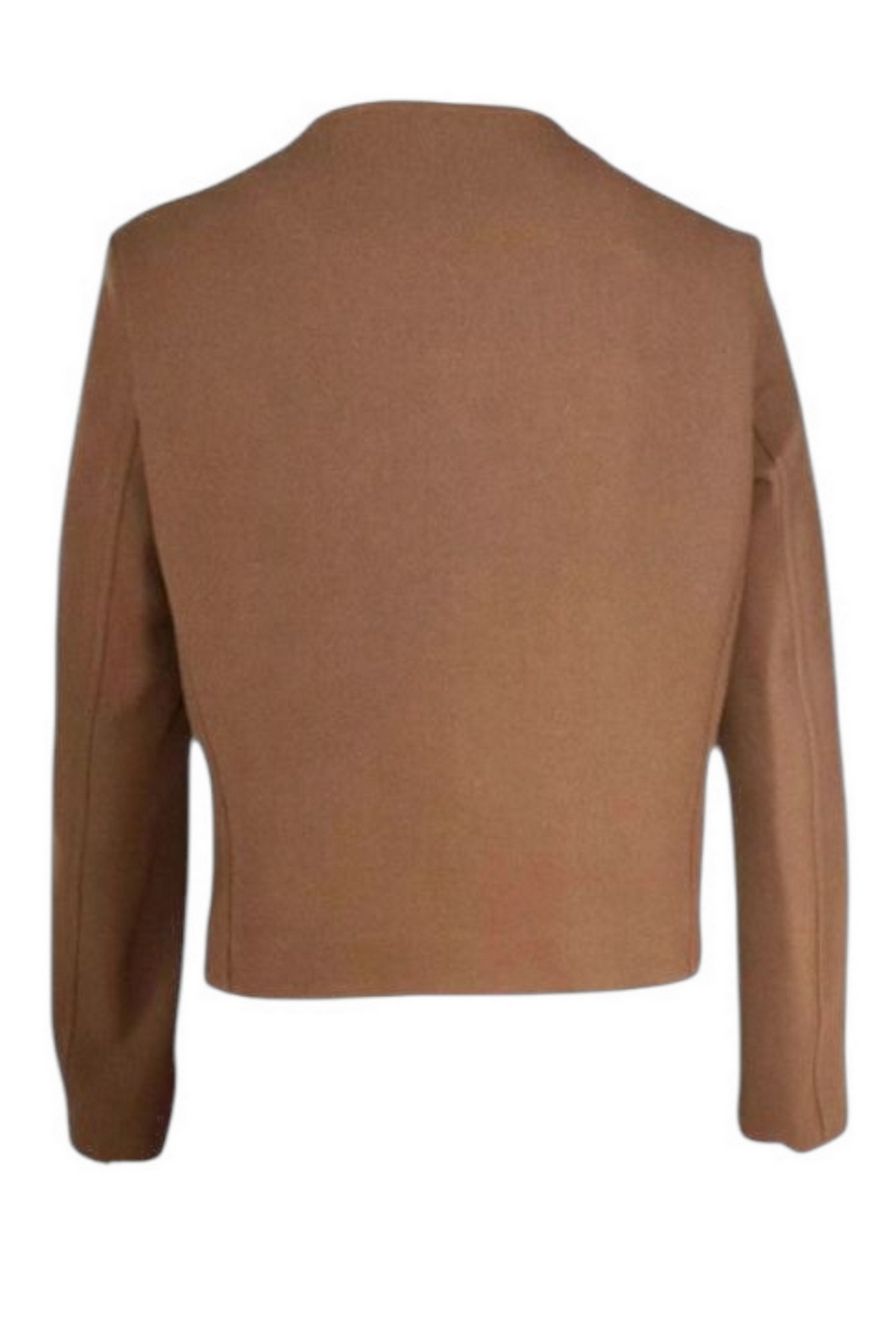 Gnossienne jacket. Chanel style. Patch pockets with flaps. Snap button closure. Regular fit. Composition: 62% polyester, 32% viscose, 6% elastane. Made in Italy.