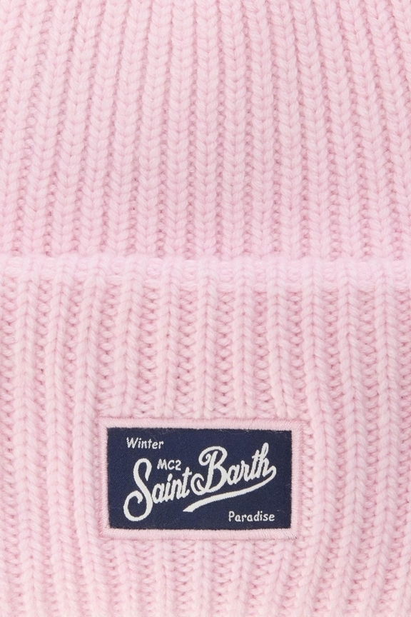 Mc2 Saint Barth ribbed beanie in a cashmere blend yarn, warm and soft. The ribbed cuff and logo label centered on the front complete a simple, feminine design, ideal for winter and everyday wear. Gauge 3.5. Ribbed knit. Solid black color. Ribbed cuff. Logo label centered on the front cuff. Comfortable and stretchy fit. Composition: 40% wool, 10% cashmere, 25% polyamide, 25% viscose.