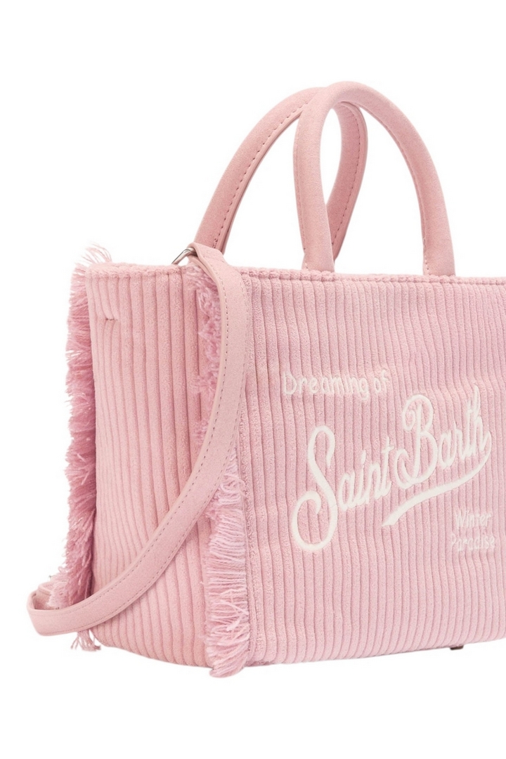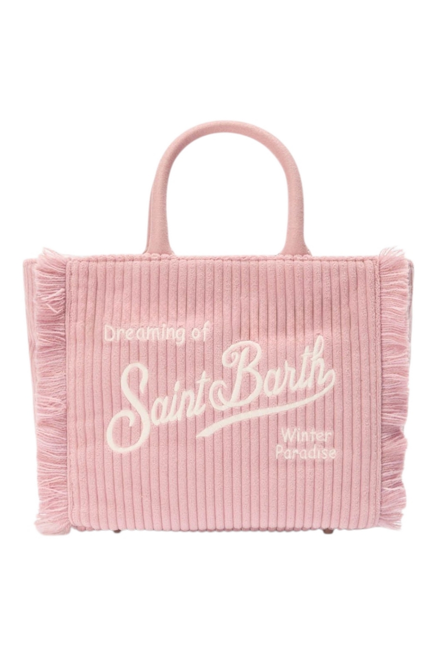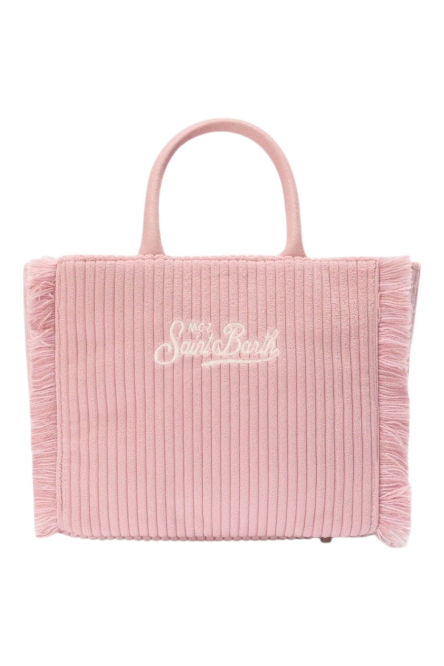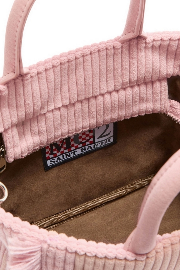 Vanity Mini Corduroy bag by Mc2 Saint Barth in corduroy. Adds a playful and contemporary touch to your style. Handbag. Corduroy and faux suede. Fabric handles. Removable and adjustable shoulder strap. Internal pocket. Embroidered logo, fringe detail. Dimensions: 20 x 19 x 10 cm. Composition: 100% polyester