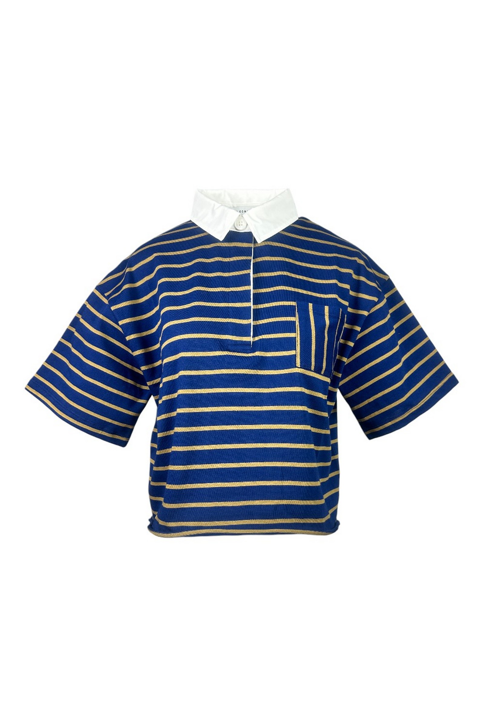 Noumeno Concept cropped cotton polo shirt. Striped pattern. Short sleeves. Front pocket. Logo on the back. Boxy fit. Composition: 100% cotton. Made in Italy.