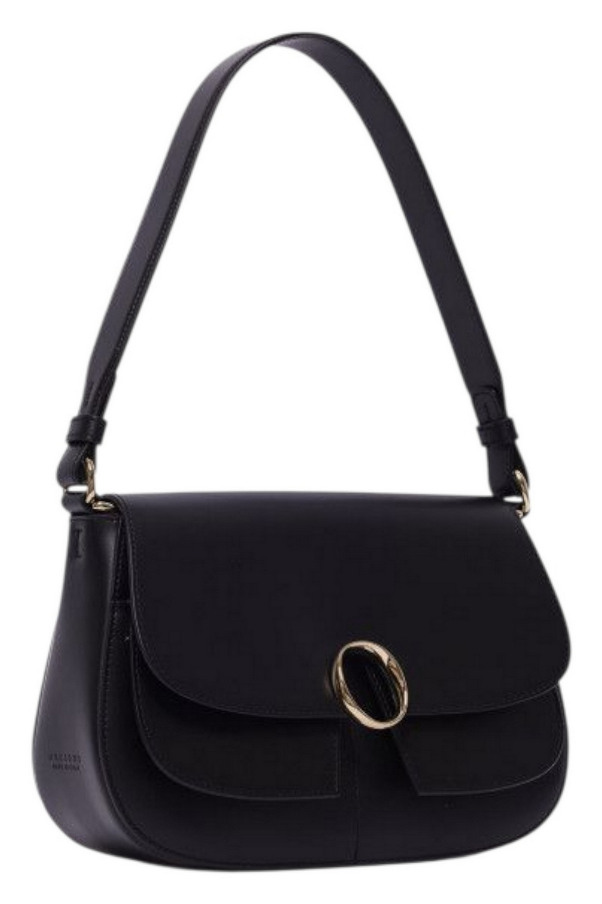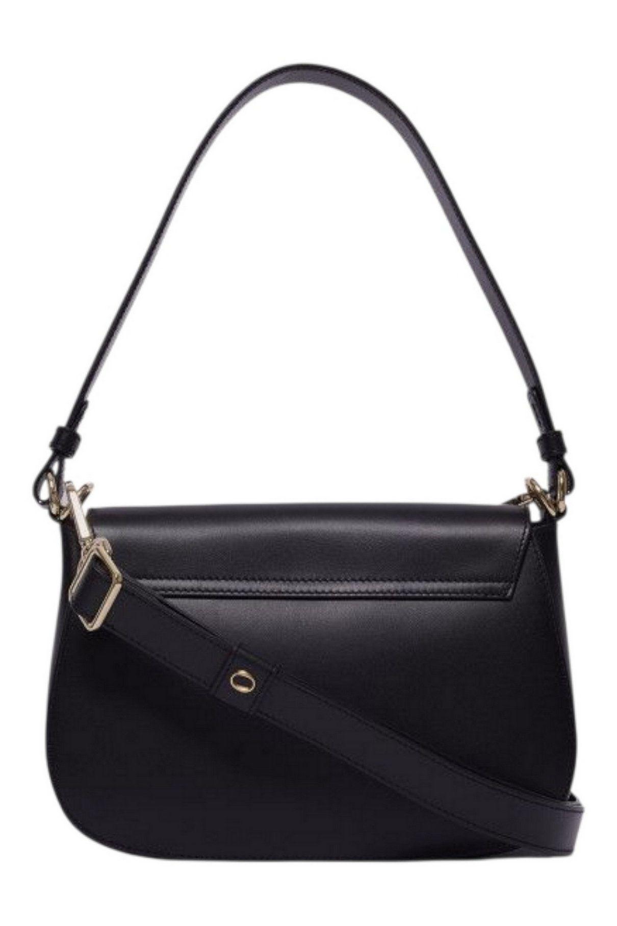 Kate bag by Orciani in smooth leather. Dimensions: Width: 26 cm / Height: 18 cm / Depth: 9 cm Pockets: 2 external / 1 internal pocket with zip. Closure: with flap and magnetic button. Features: shoulder strap, adjustable removable shoulder strap. Material: smooth calfskin. Details: light gold-finish metal hardware. Made in Italy