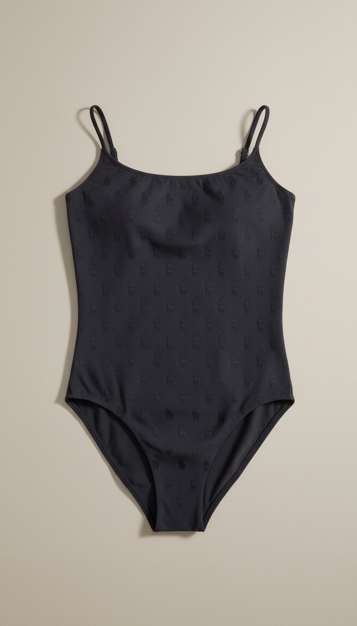 Ralph Lauren one-piece swimsuit. Embroidered ponies. Padded cups. Adjustable straps. Regular fit. Composition: 88% recycled polyester, 12% elastane.