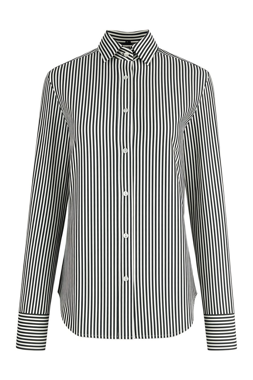 Sara shirt by Xacus in stretch fabric. Striped pattern. Classic pointed collar and slim fit. Made from a blend of polyamide and elastane. The Active-shirt is a highly breathable, 3D-stretch garment that dries quickly, remaining comfortable in any situation involving movement. Fabric composition: 86% polyamide, 14% elastane