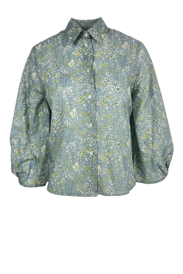 Xacus shirt. 3/4-length balloon sleeves. Floral pattern. Boxy fit. Pleat at the back. Composition: 100% cotton.