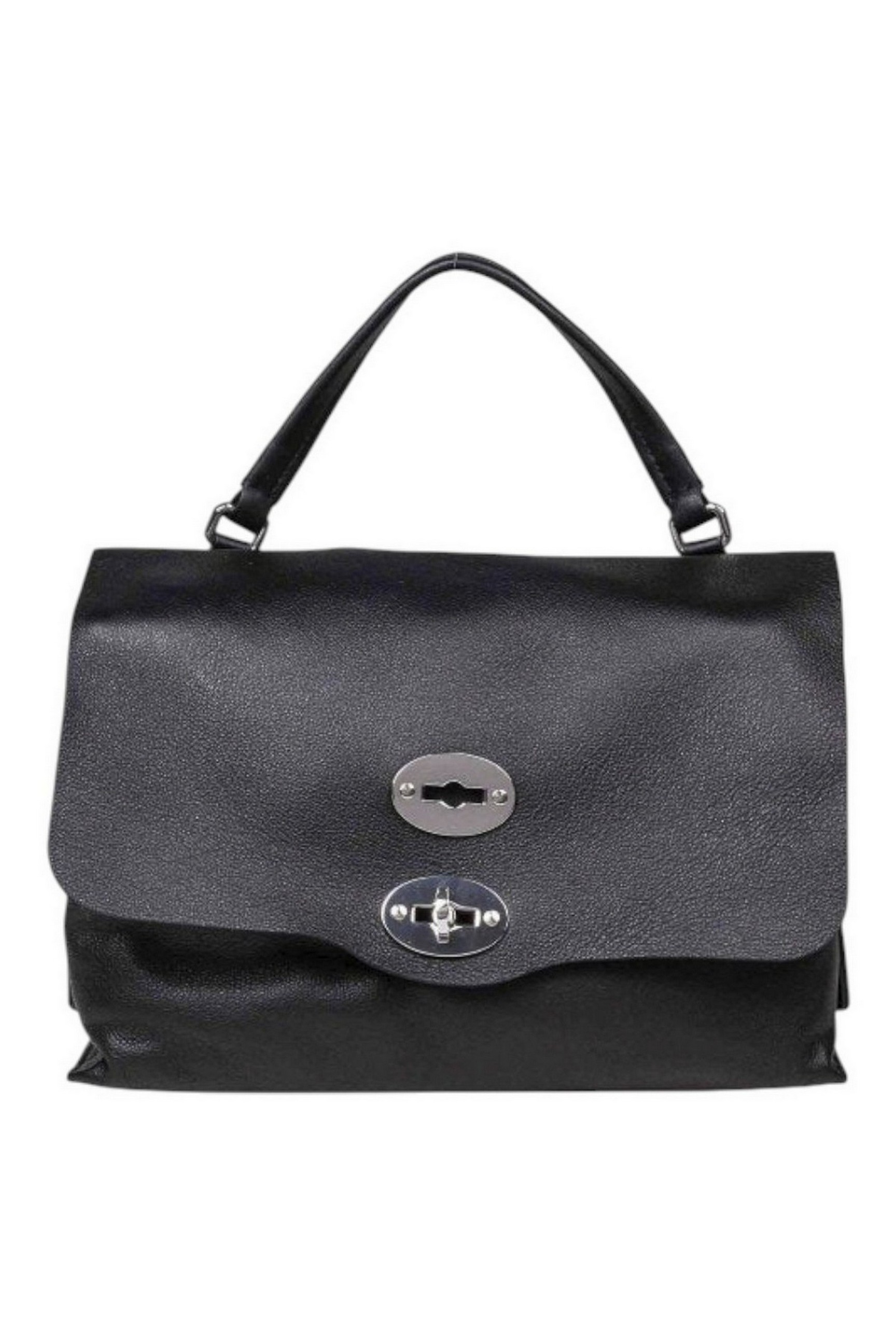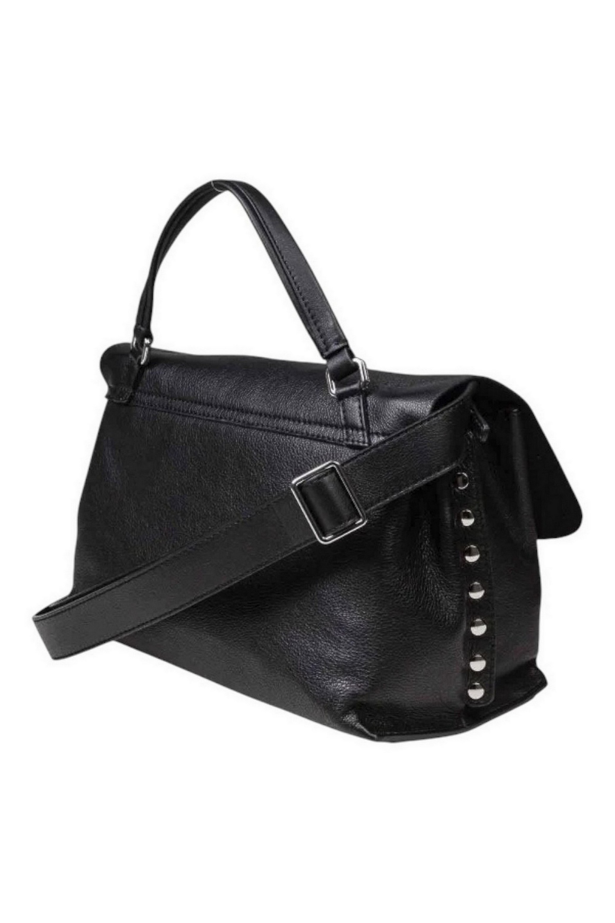 Saeta messenger bag by Zanellato. Made of leather. Double internal compartment. Side studded appliqués. Top handle. Adjustable and removable shoulder strap. Flap closure with turnlock. Dimensions: 29 x 20 x 15 cm
