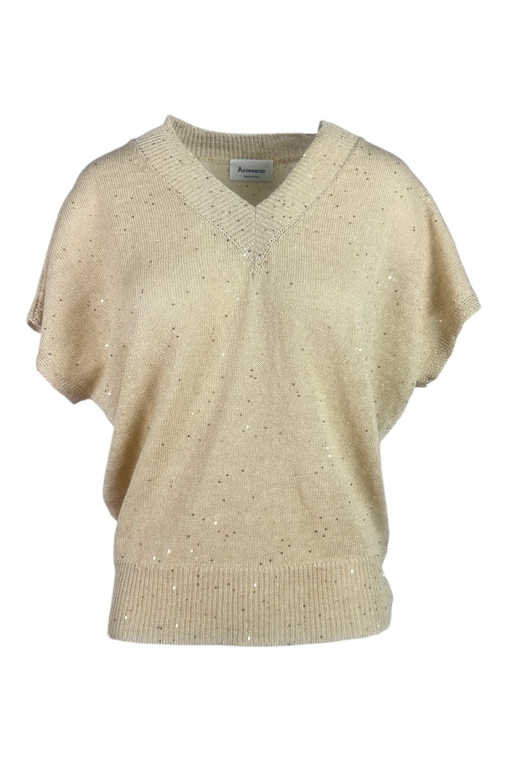 Gilet di A rovescio. Scollo a v. Dettagli pailettes. Vestibilità morbida. Composizione: 58% lino, 37% cotone, 5% poliestere.
