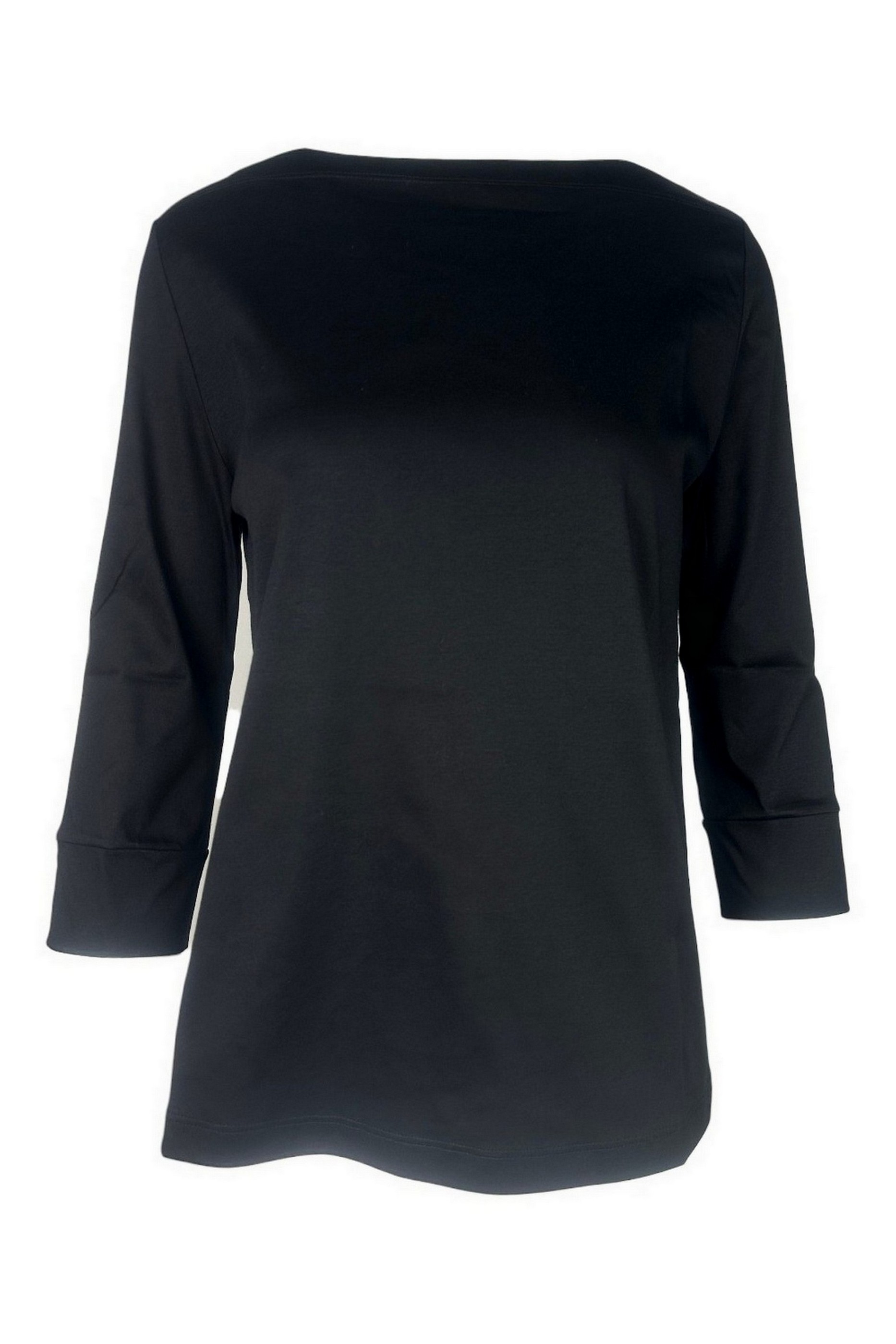 T-shirt di A rovescio in cotone supima. Scollo a barca. Manica 3 quarti con spacchetti. Fondo stondato. Vestibilità ad A. Composizione: 100% cotone. Made in Italy.