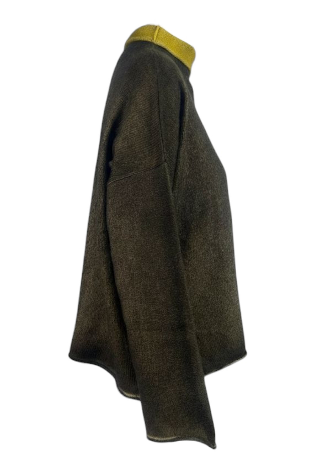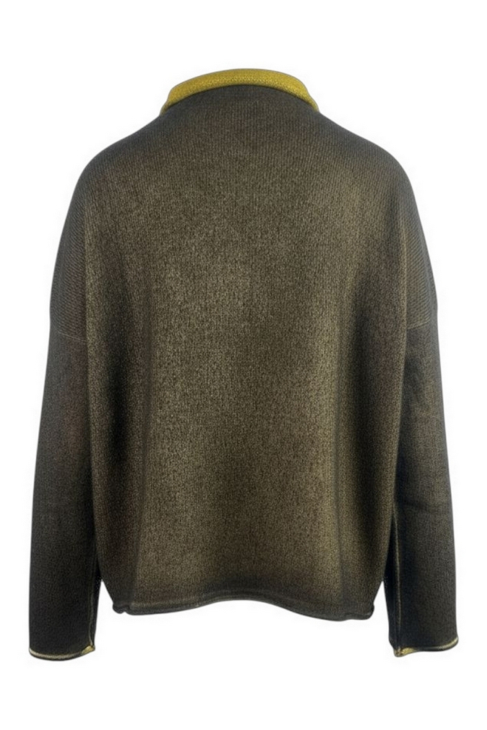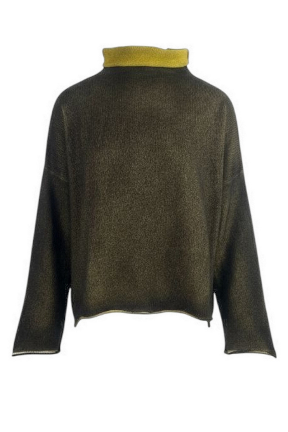 Maglia di Alessandro Aste. Collo alto. Vestibilità a scatola. Sfumata. Spalla calata. Composizione: 90% lana merino, 10% cachemire.
