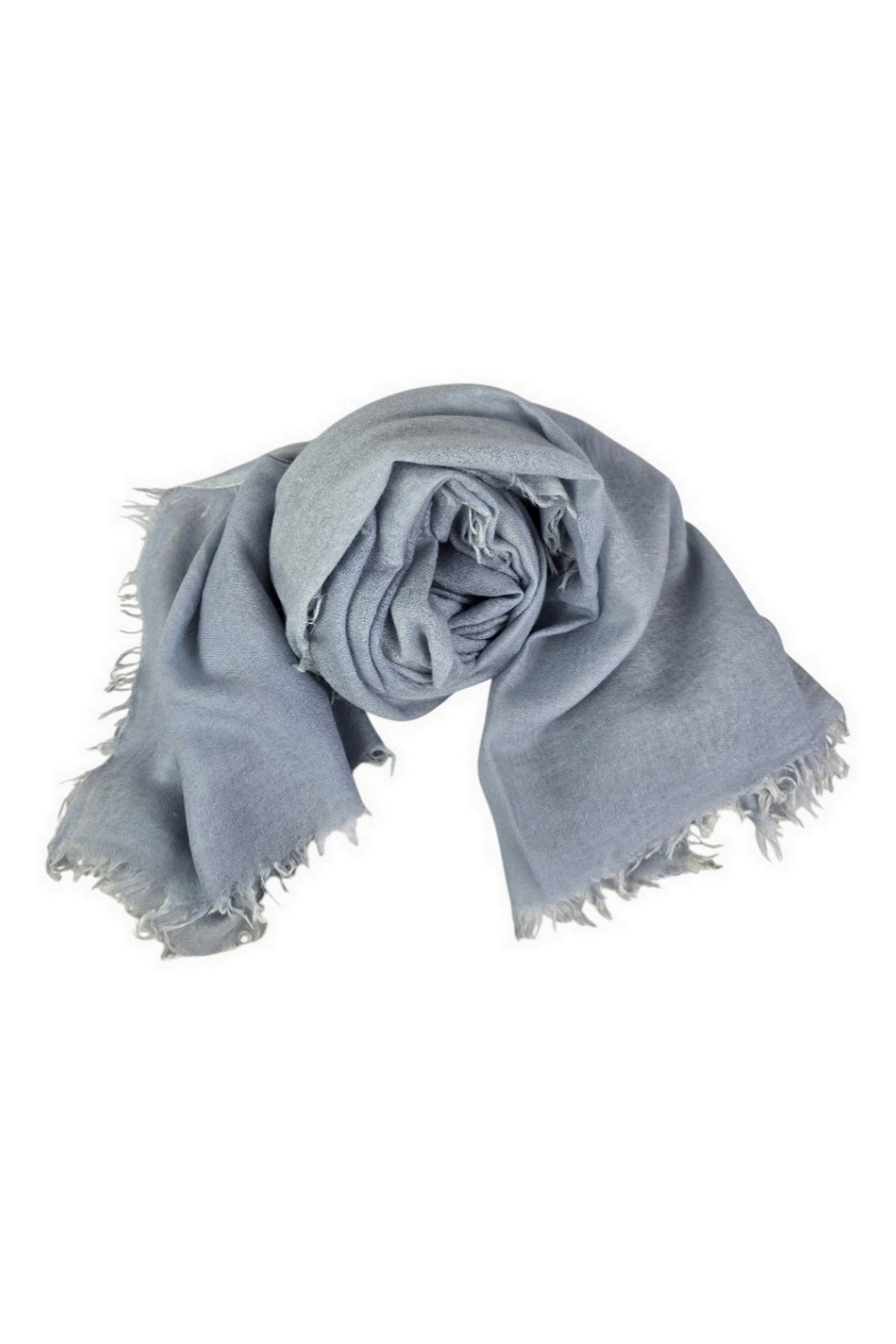 Sciarpa di Alesandro Aste in cachemire lavato. Dettagli frangine. Effetto sfumato Dimensioni: 190x75 cm.Composizione: 100% cachemire.