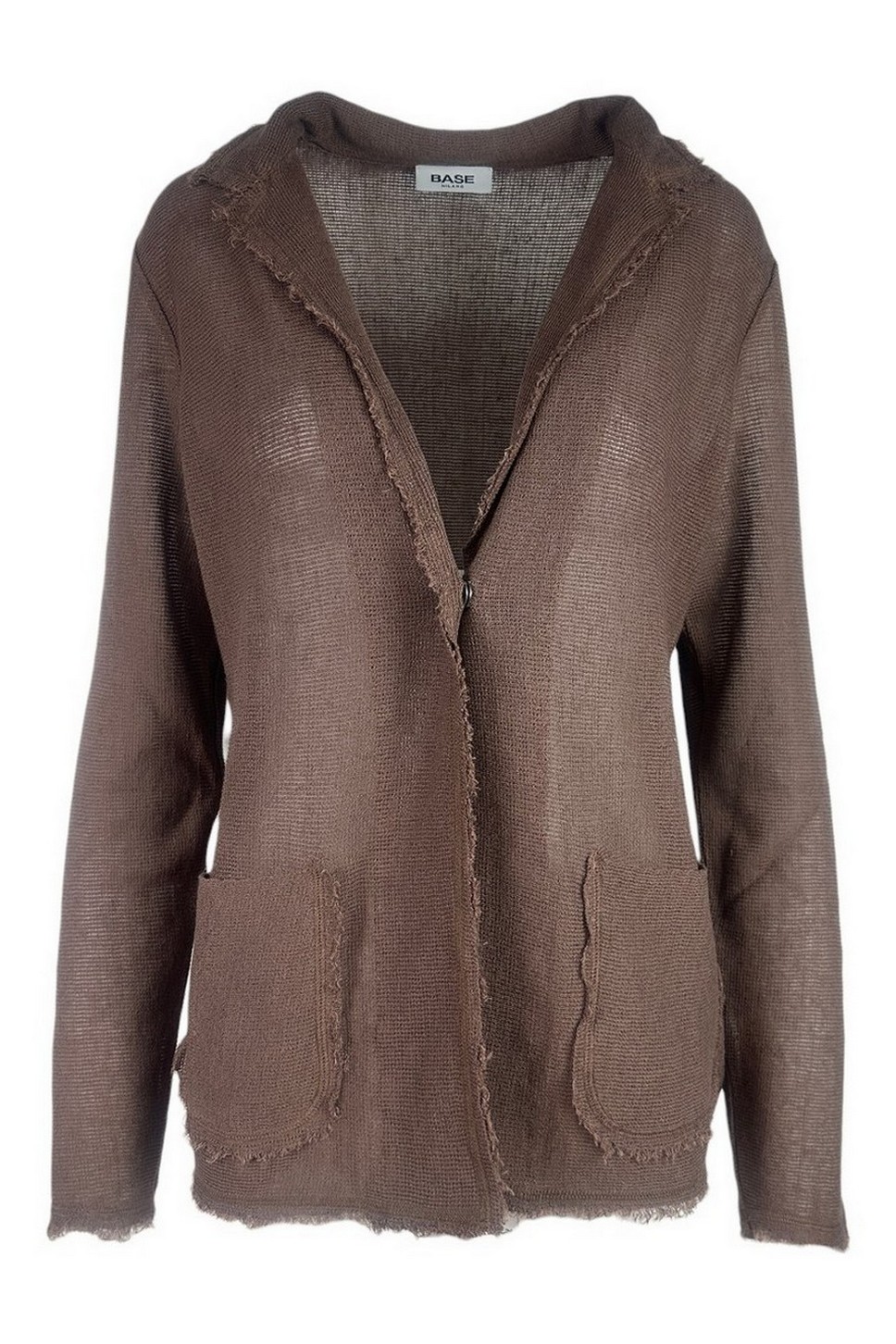 Giacca di Base Milano in lino. Chiusura con bottone automatico. Tasche. Dettagli frangine. Vestibilità regolare. Composizione: 64% lino, 36% cotone. Made in Italy.