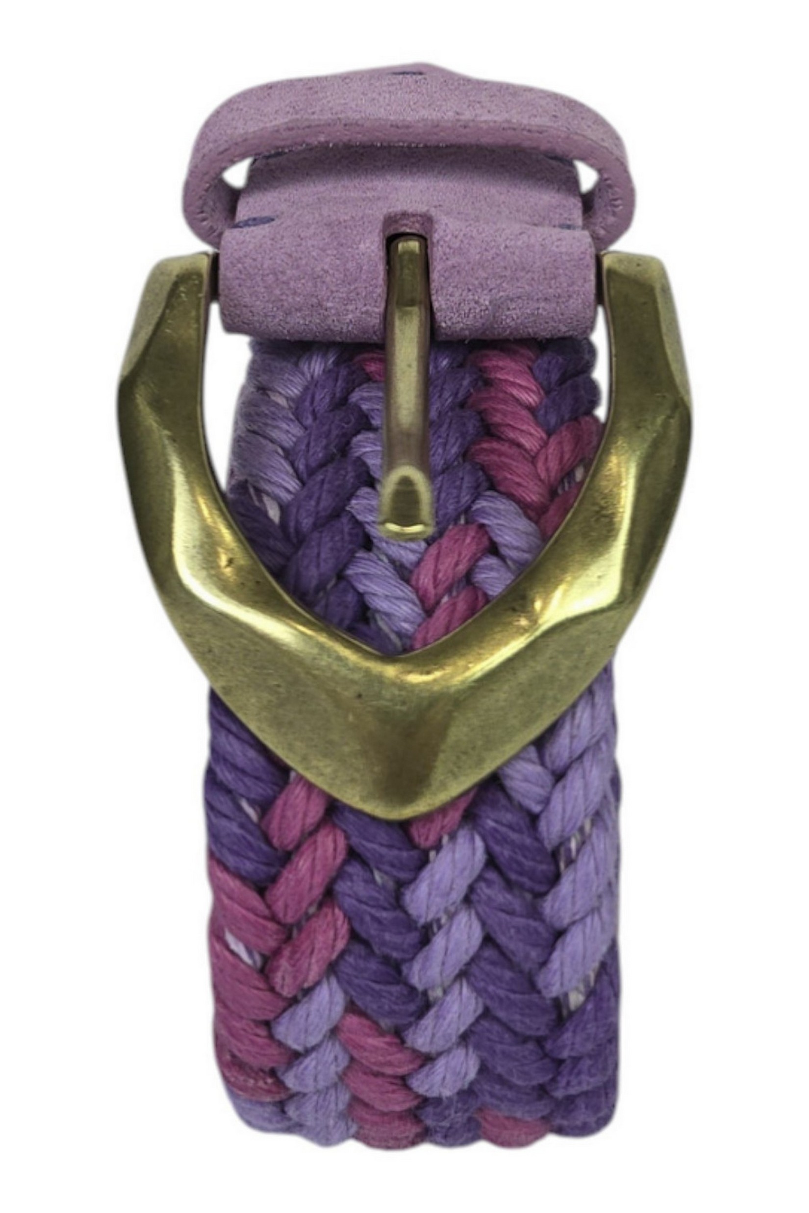 Cintura di BaxLab intrecciata in tessuto. Dettagli pelle. Fibbia dorata. Altezza 4 cm. Made in Italy.