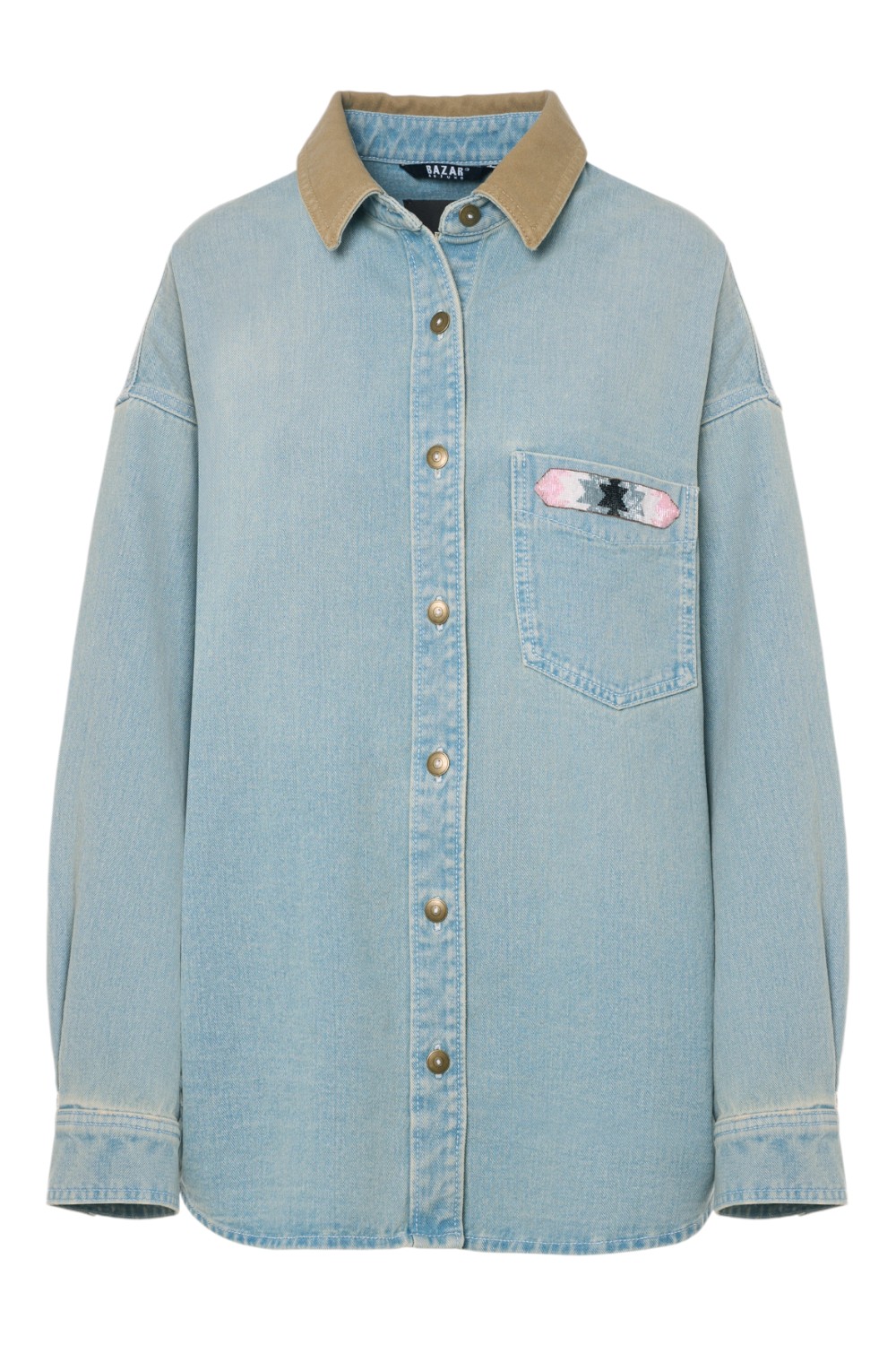 Giacca camicia di Bazar Deluxe. Denim. Modello over. Taschino con dettagli perline. Composizione: 100% cotone. Made in Italy.