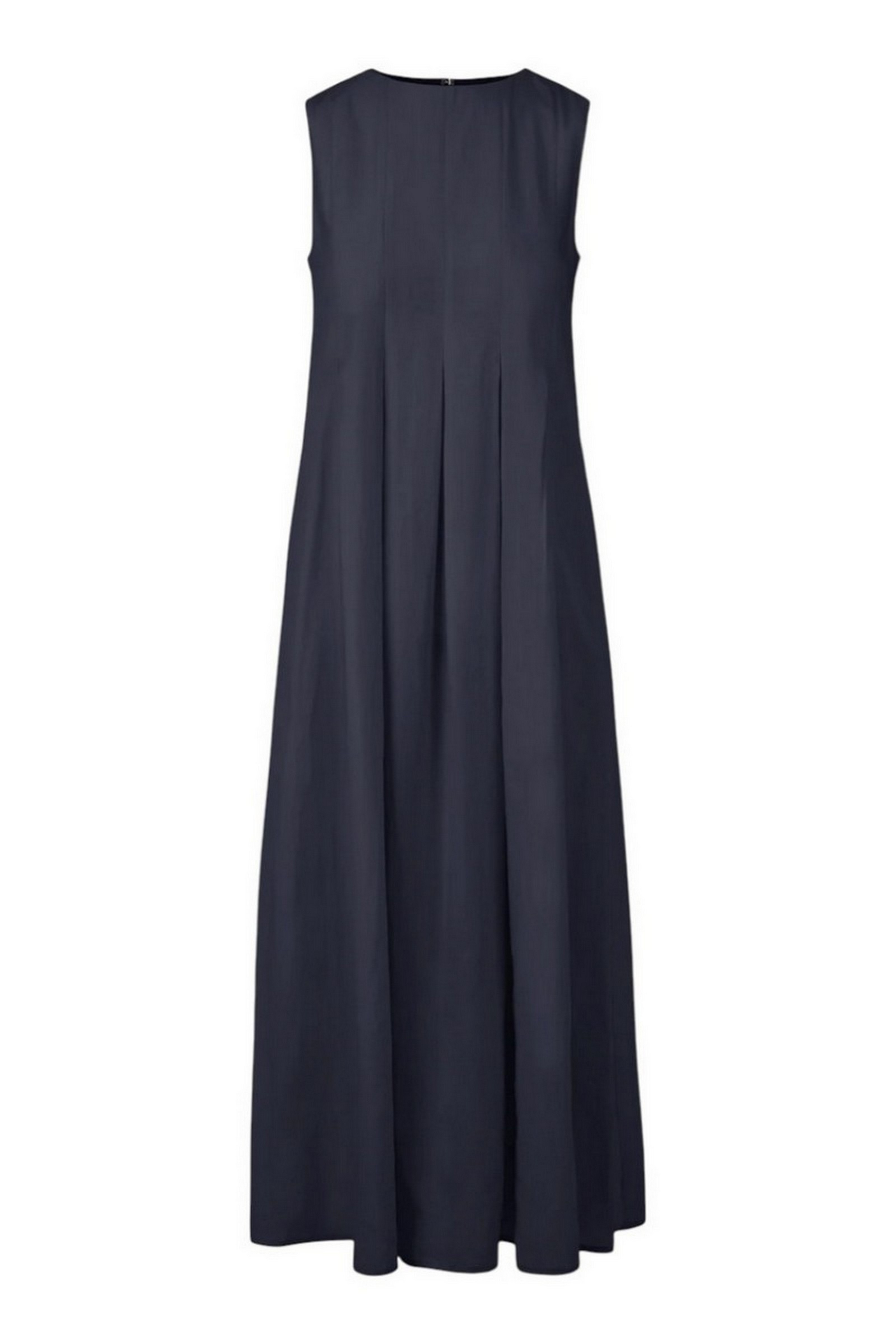 Abito ampio di Bomboogie senza maniche con pieghe verticali e zip posteriore in lyocell fluido. Offre leggerezza e traspirabilità nelle giornate calde. Vestibilità regular con stile minimale, adatto a occasioni estive. Vestibilità regular. Spalle scoperte. Zip posteriore. Tessuto fluido. Vestibilità regular. Misure capo: Lunghezza 130 cm - misura davanti, da spalla (attaccatura collo) a fondo per taglia 2. Composizione : 100% Lyocell