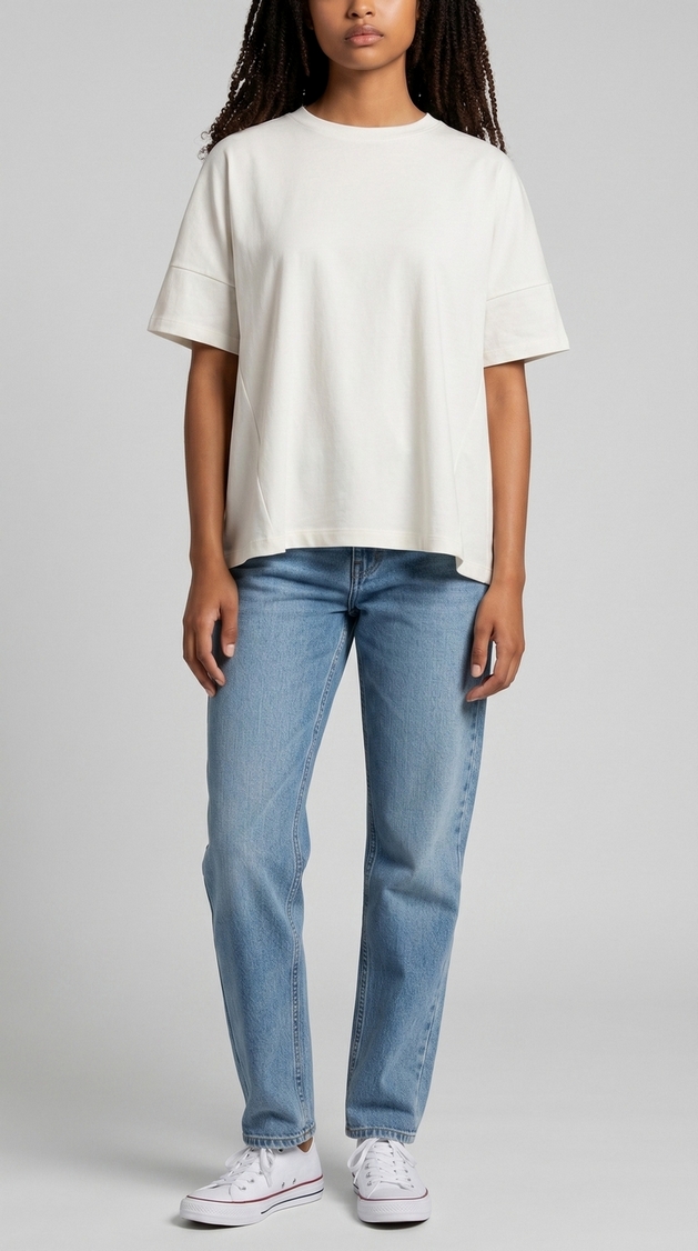 T-shirt loose fit di Bomboogie. Manica corta. Tessuto 100% cotone organico (Certificazione GOTS). Modello loose fit a manica corta. Composizione: 100% cotone