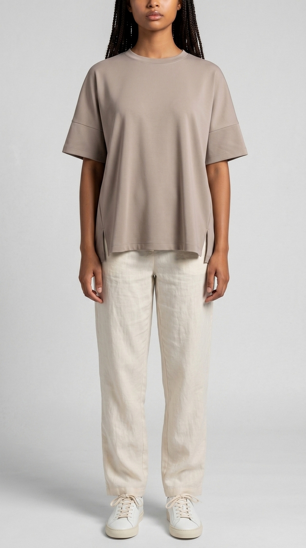 T-shirt loose fit di Bomboogie. Manica corta. Tessuto 100% cotone organico (Certificazione GOTS). Modello loose fit a manica corta. Composizione: 100% cotone