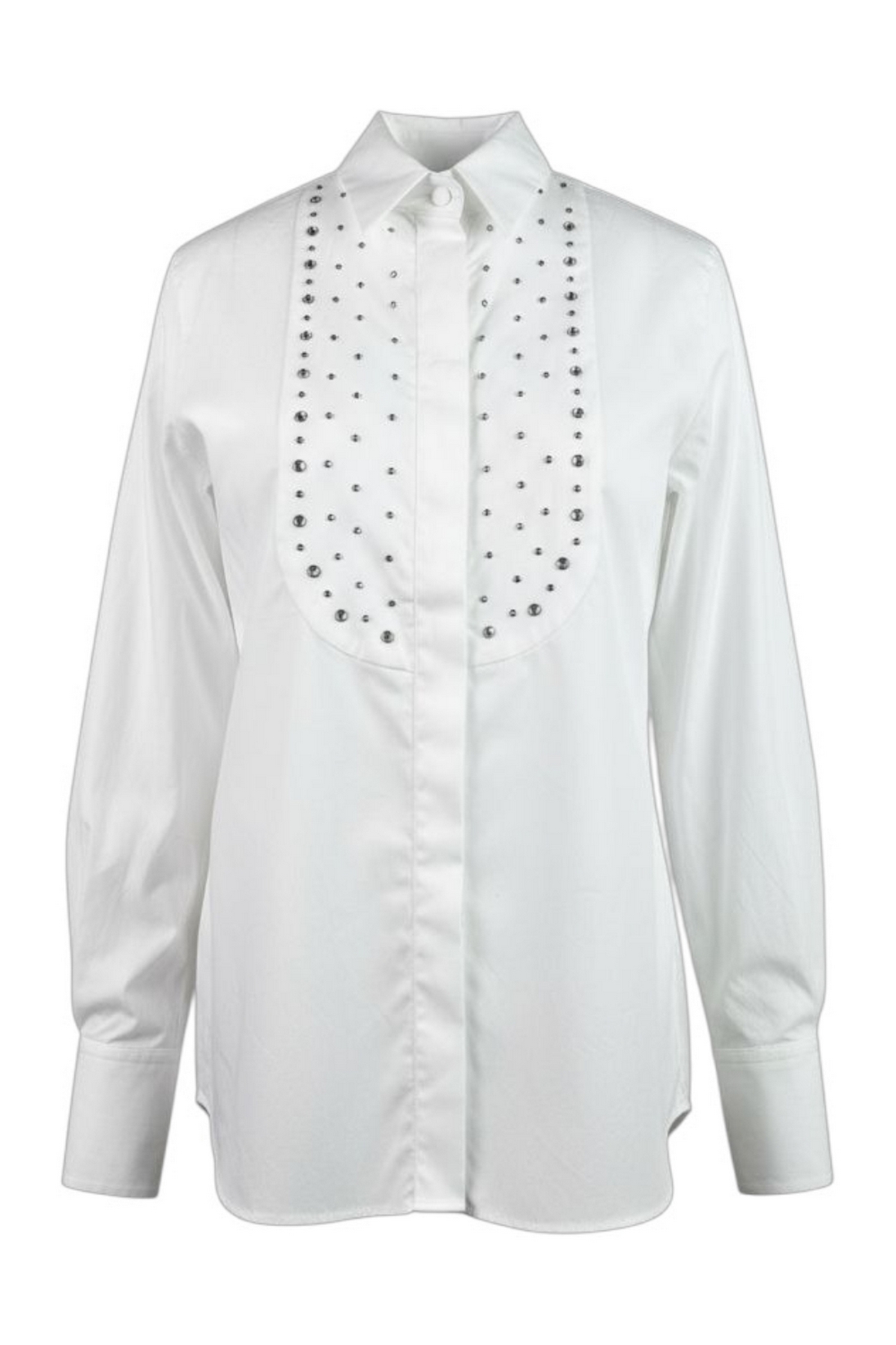 Camicia di Caliban. Plastron con strass.Vestibilità morbida. Composizione: 100% cotone. Made in Italy.