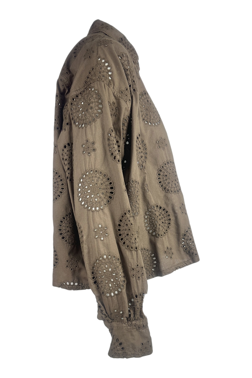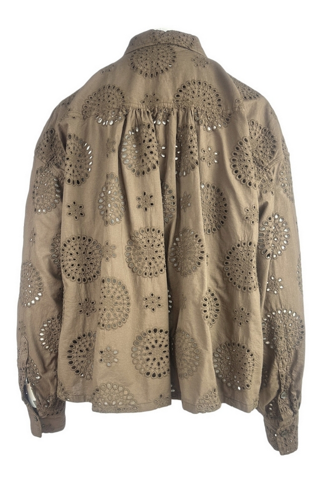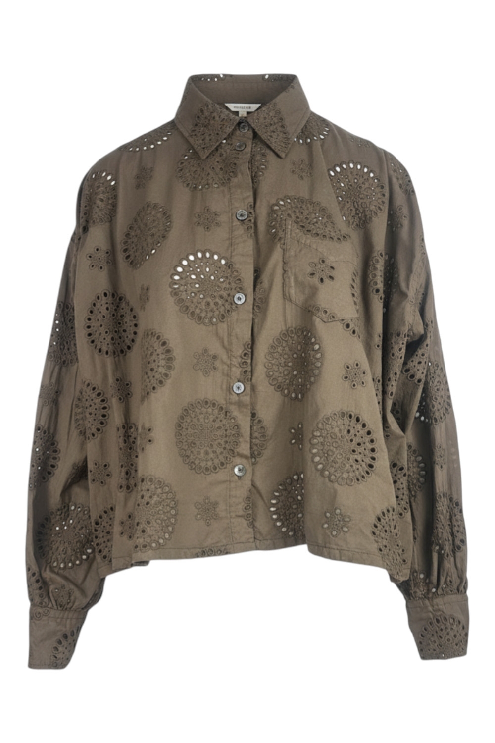 Camicia di Caliban. Sangallo. Maniche lunghe. Spalla calata. Cropped. Taschino sul davanti. Vestibilità over. Composizione: 100% cotone. Made in Italy.