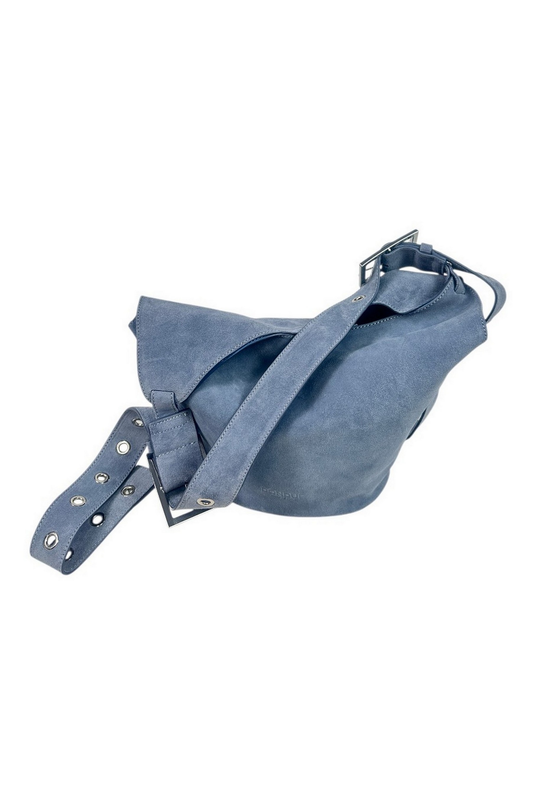 Bisaccia di Dondup. Tracolla con borchie. Pelle scamosciata.. Pochette all'interno. Dimensioni: 22 x 31 x 12 cm. Made in Italy.