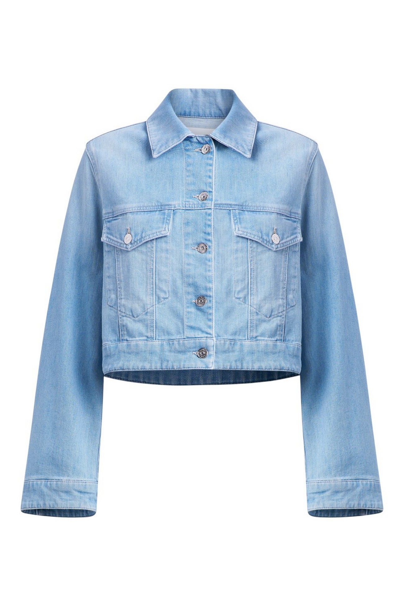 Giubbino di Dondup in denim. Modello cropped. Chiusura con bottoni in metallo. Tasche sul davanti. Maniche svasate. Vestibilità a trapezio. Composizione: 89% cotone, 11% elastomultiestere. Made in Italy.
