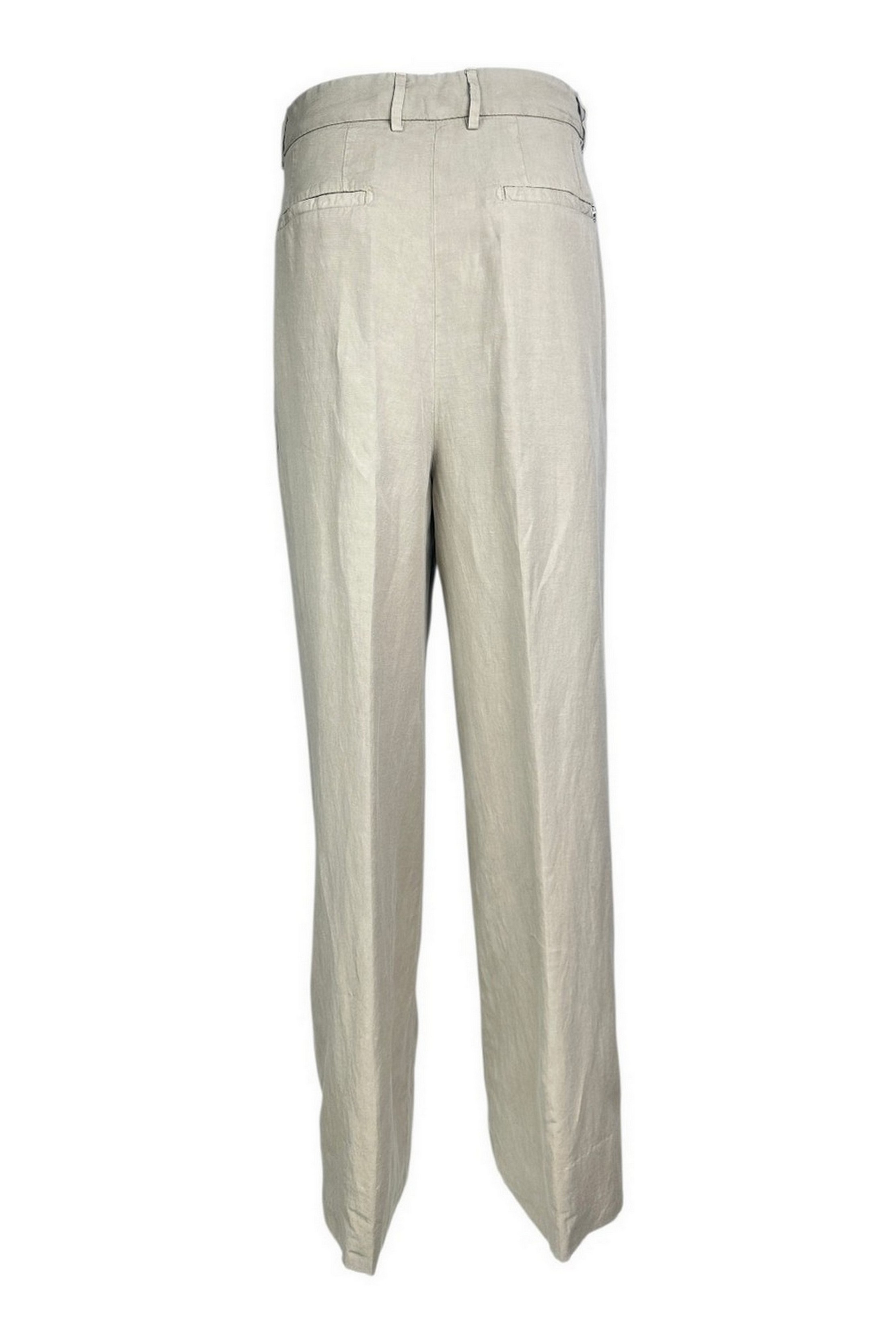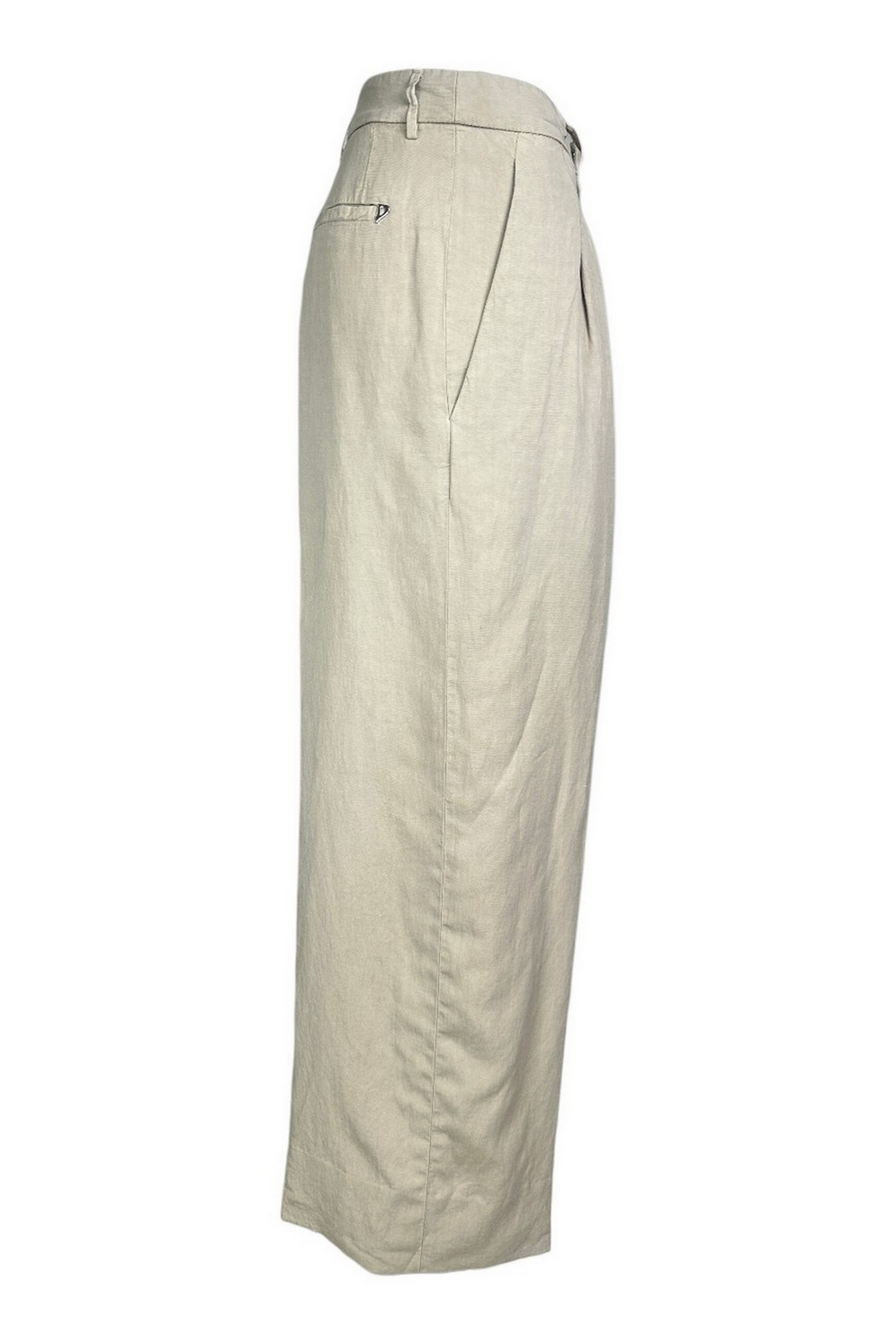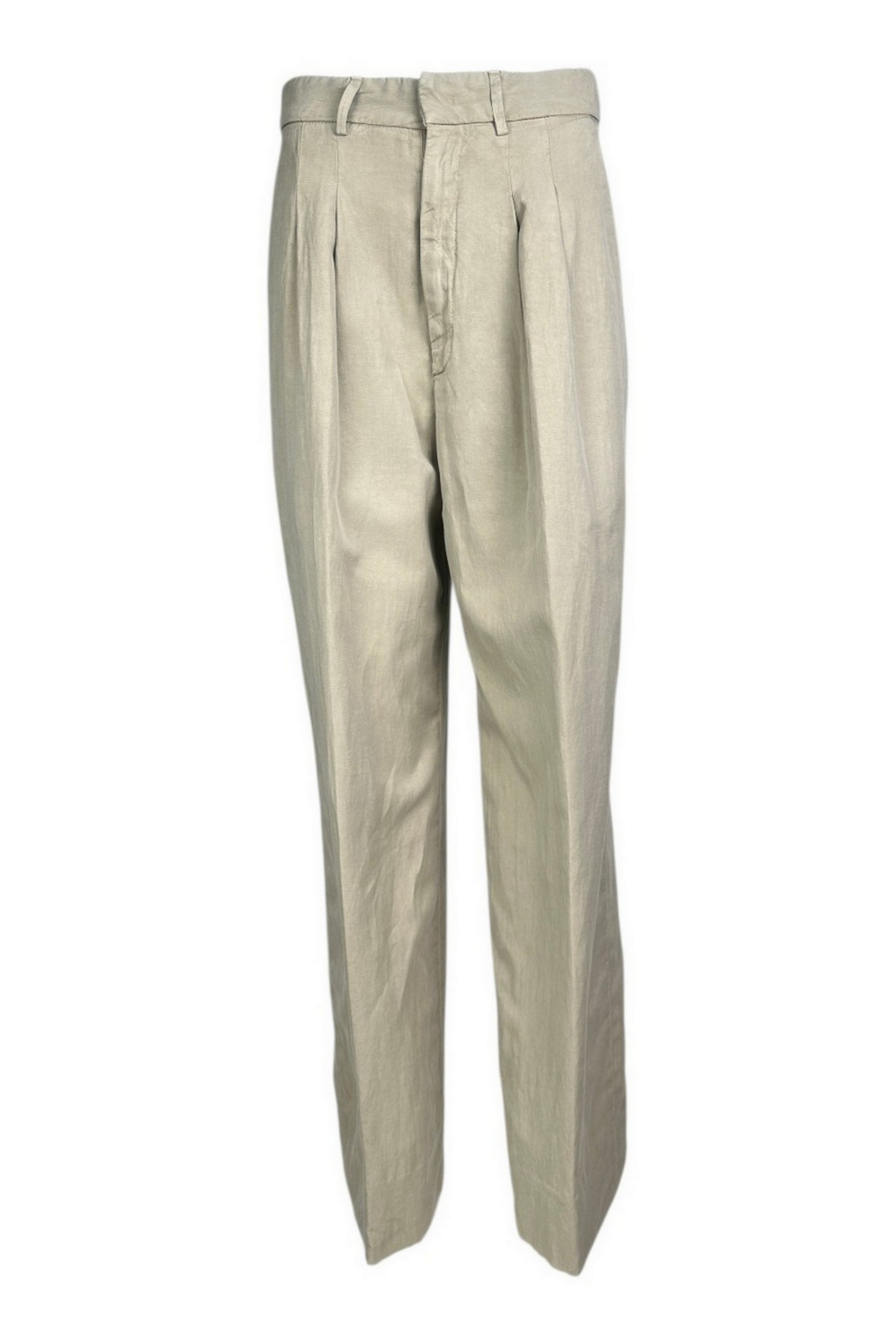 Pantalone di Dondup modello Eloise. Gamba larga. Pinces. Tasche. Passanti in vita.Chiusura con zip. Composizione: 59% lyocell, 23% lino, 18% cotone.. Made in Italy.