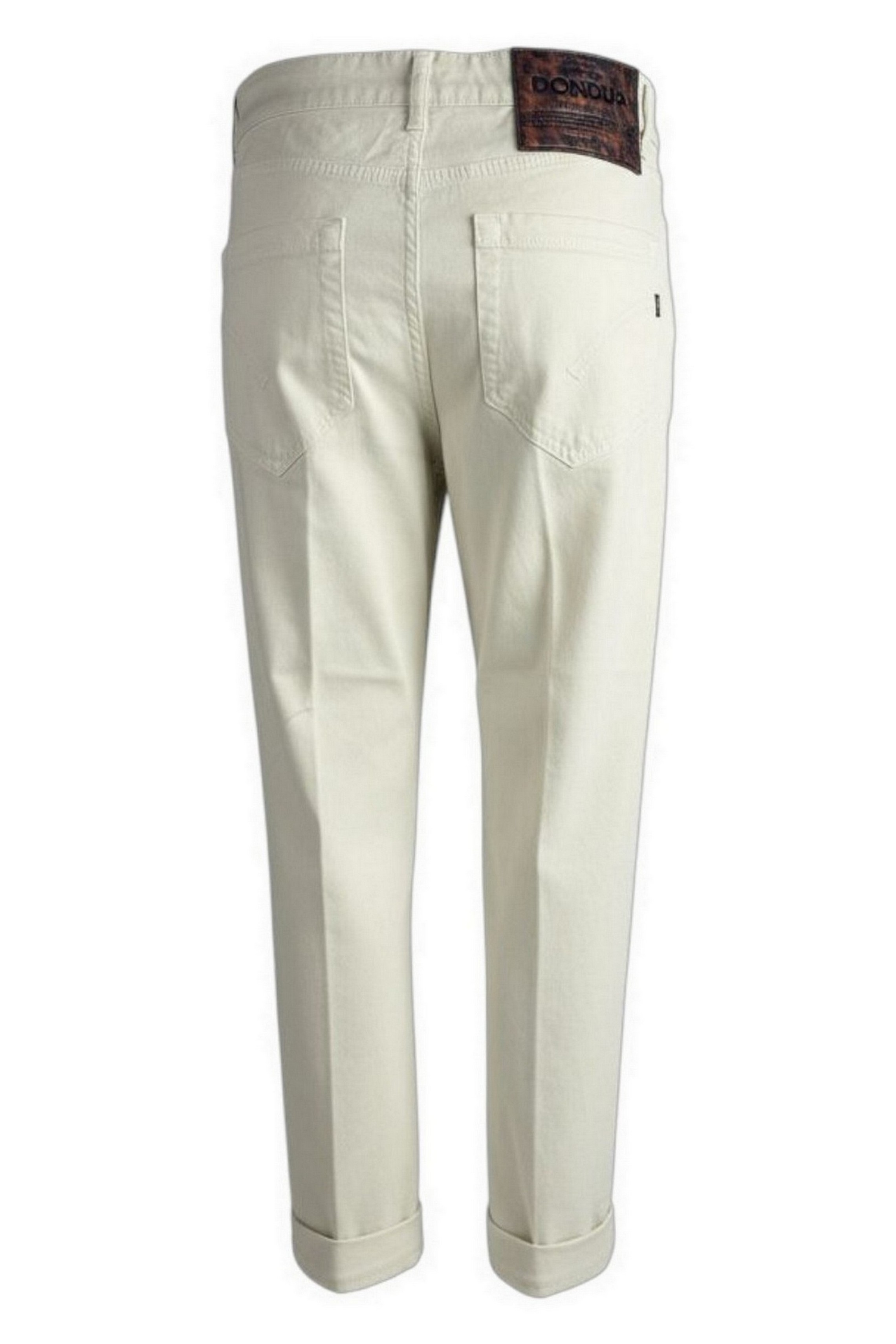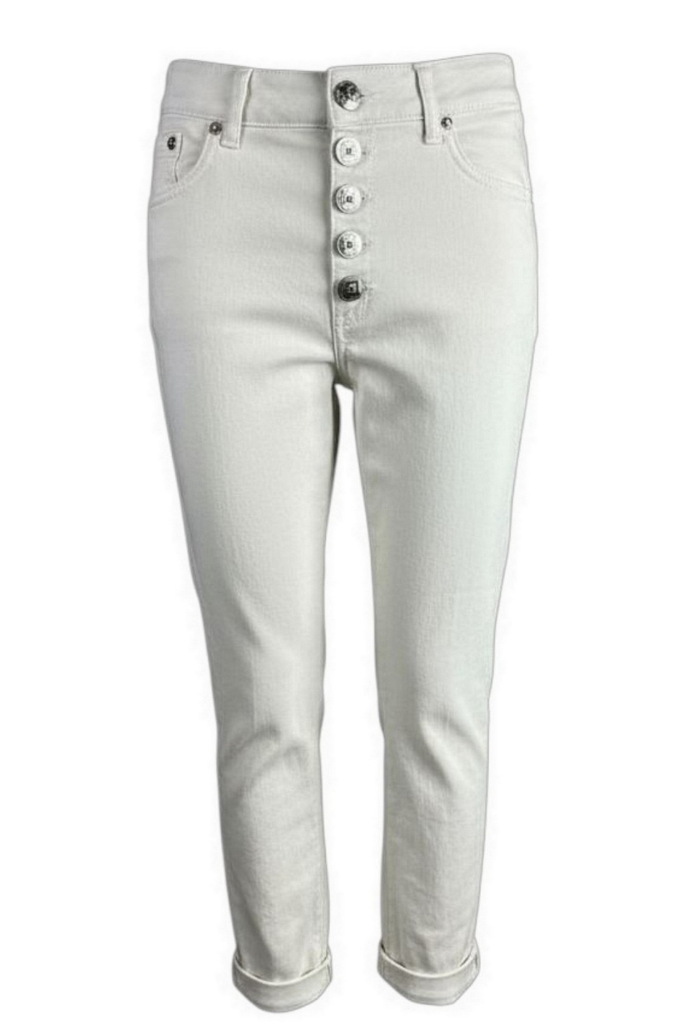 Pantalone Dondup. Modello Koons. Cinque tasche. Loose fit.Vita regolare. Cotone mano pesca. Bottoni gioiello. Lunghezza alla caviglia. Composizione: 98% cotone, 2% elastane. Made in Italy. Prodotto rigorosamente Made in Italy, eccellenza manifatturiera. La composizione dei tessuti offre leggerezza e comfort.