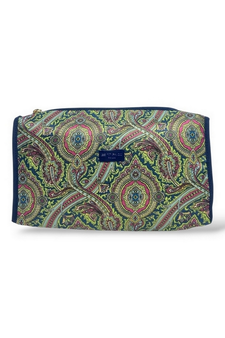 Beauty di Etro in tessuto. Fantasia cachemire. Chiusura con zip. Profili in gros. 100% poliestere. Dimensioni: L 28 x H 18 x P 10 cm. Made in Italy. Ideale per chi cerca praticità e stile, perfetta in viaggio o per tutti i giorni. Abbinabile a borse d'autore o capi colorati. Prodotto rigorosamente Made in Italy, eccellenza manifatturiera. Il beauty si presta sia al viaggio che all'uso quotidiano con dettagli di tendenza. Pensato per unire praticità e eleganza in ogni dettaglio.