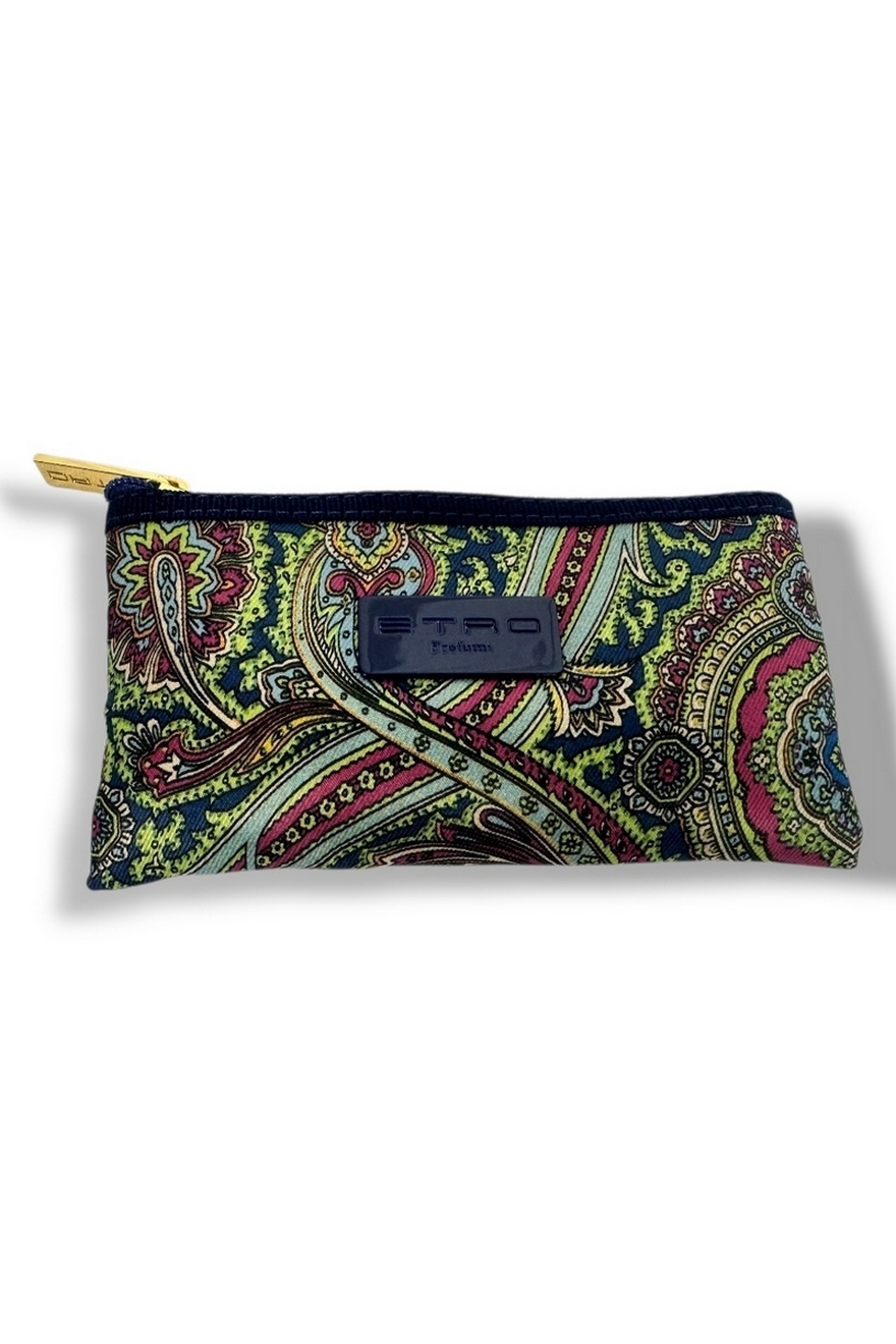 Portachiavi di Etro Elegante charm portachiavi dalla forma rettangolare con zip dorata e logo Etro in rilievo applicato sul fronte. Realizzata nel caratteristico tessuto paisley multicolore del brand, presenta una fantasia ricca e sofisticata con motivi cachemire in tonalità di verde, viola, rosa e blu su fondo scuro. La zip dorata con tirante metallico assicura chiusura sicura e praticità d'uso. Fodera interna e cuciture di alta qualità testimoniano l'eccellenza artigianale italiana. Dimensioni compatte ma capienti, perfetta per contenere essenziali come,chiavi, carte e piccoli oggetti personali. Ideale sia per il giorno che per la sera, si abbina facilmente a look casual ed eleganti grazie alla versatilità della stampa paisley. Ottima come organizer interno per borse più grandi. Questa raffinata pochette Etro rappresenta l'essenza del design italiano più ricercato, dove tradizione sartoriale e creatività contemporanea si fondono armoniosamente. Il tessuto paisley, simbolo iconico del marchio milanese, racconta storie di viaggi e culture lontane attraverso un caleidoscopio di colori e forme che catturano lo sguardo. La qualità costruttiva superiore e l'attenzione ai dettagli rendono questo accessorio un piccolo gioiello di stile, capace di impreziosire qualsiasi outfit con eleganza discreta. Perfetta compagna per chi ama distinguersi con classe, questo charm trasforma ogni occasione in un momento speciale, dalla riunione di lavoro all'aperitivo con le amiche, fino alla cena più formale. La qualità dei materiali garantisce comfort e durata nel tempo. Accessorio perfetto per valorizzare ogni outfit. Perfetto per completare qualsiasi look, dal più casual al più sofisticato. Il design originale accende l'interesse e si adatta a ogni contesto. Pensato per unire praticità e eleganza in ogni dettaglio. Eleganza discreta per un prodotto versatile e senza tempo. Da mattina a sera, un capo che dimostra massima versatilità. Il marchio è sinonimo di stile riconoscibile e alta qualità.