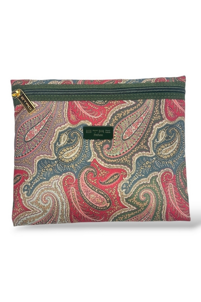 Trousse di Etro in tessuto. Fantasia cachemire. Chiusura con zip. Profili gros. Composizione: 100% poliestere. Dimensioni: L 22 x H 20 x P 1 cm. Made in Italy. Prodotto rigorosamente Made in Italy, eccellenza manifatturiera. La composizione dei tessuti offre leggerezza e comfort.
