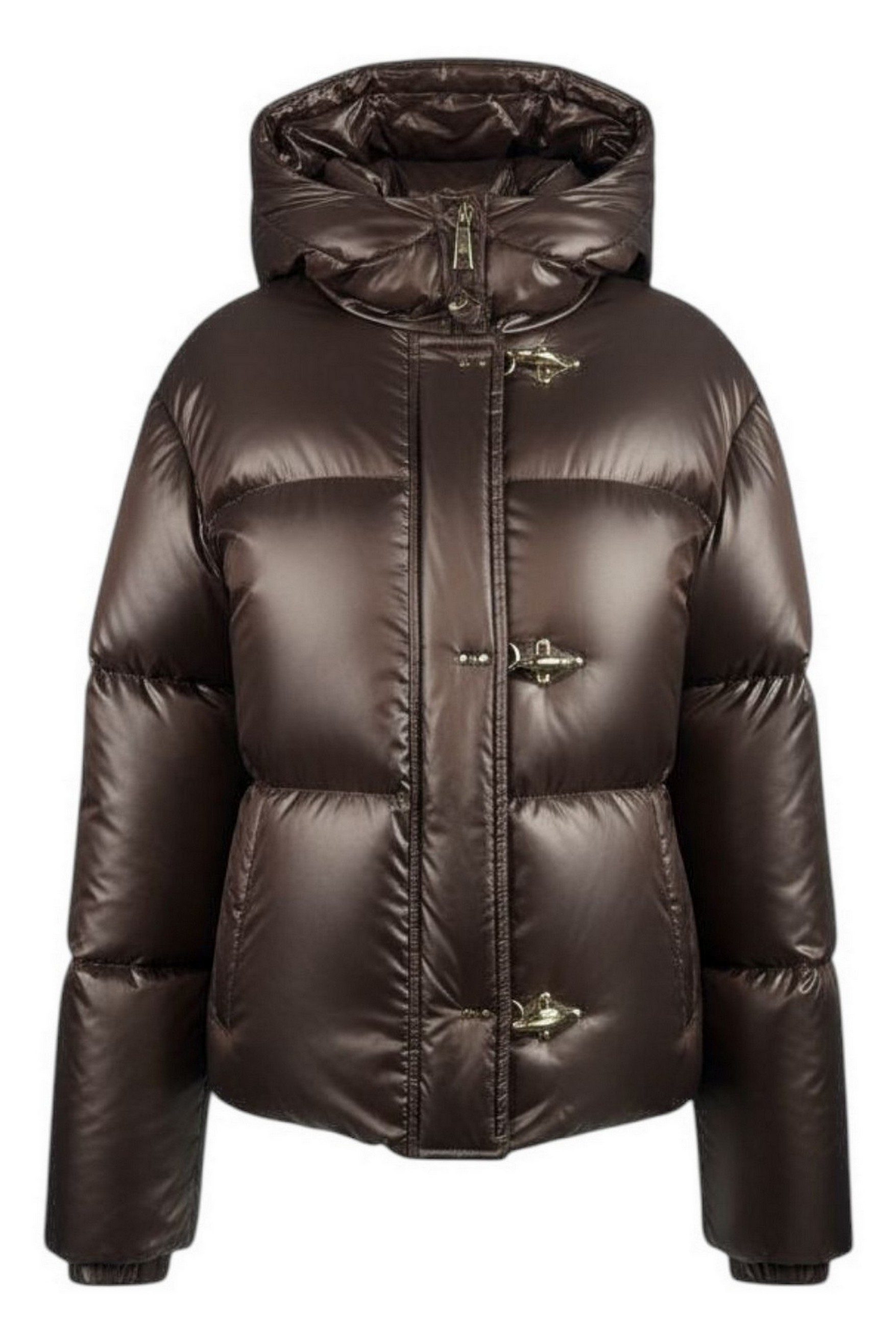 Piumino di Fay dal gusto sportivo arricchito da tre iconici ganci. Realizzato in nylon lucido a righe con proprietà down proof e water repellent, è caratterizzato da un cappuccio avvolgente e polsini antivento. Completano il modello una chiusura con zip e tasche verticali a filetto con cerniera. Made in Italy. Fitting: regular. Composizione capo: 100% poliammide, fodera 100% poliammide, imbottitura 90% piumino, 10% piume, piumino nuovo classe 1 norma UE EN1293