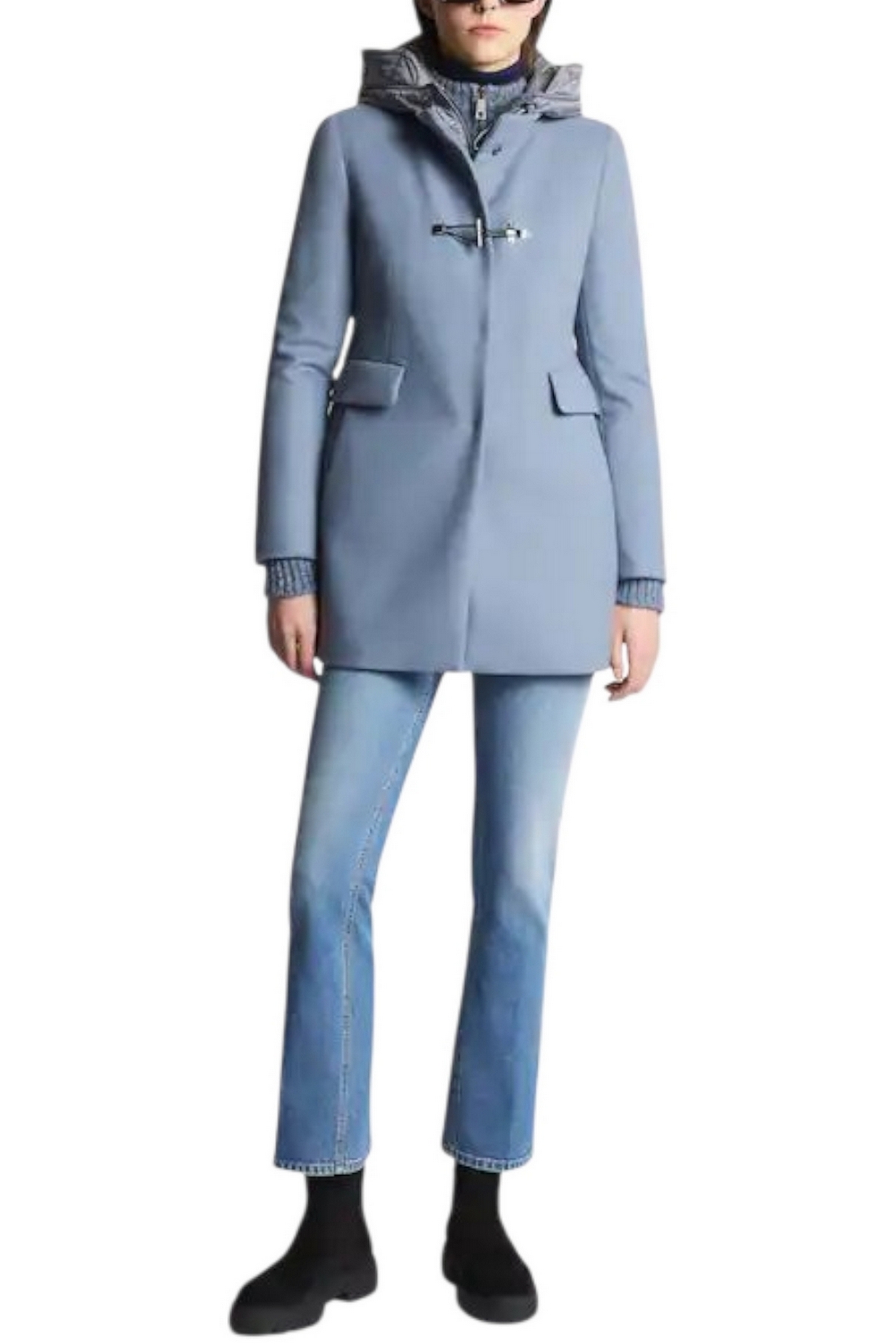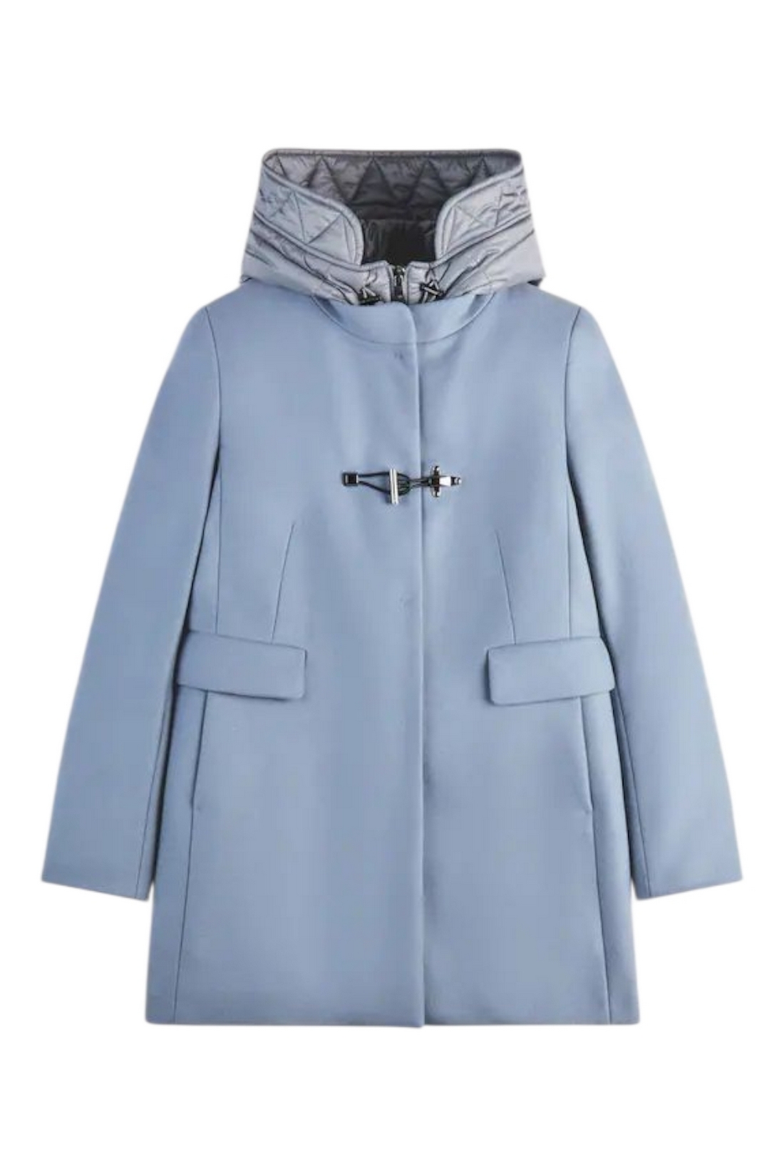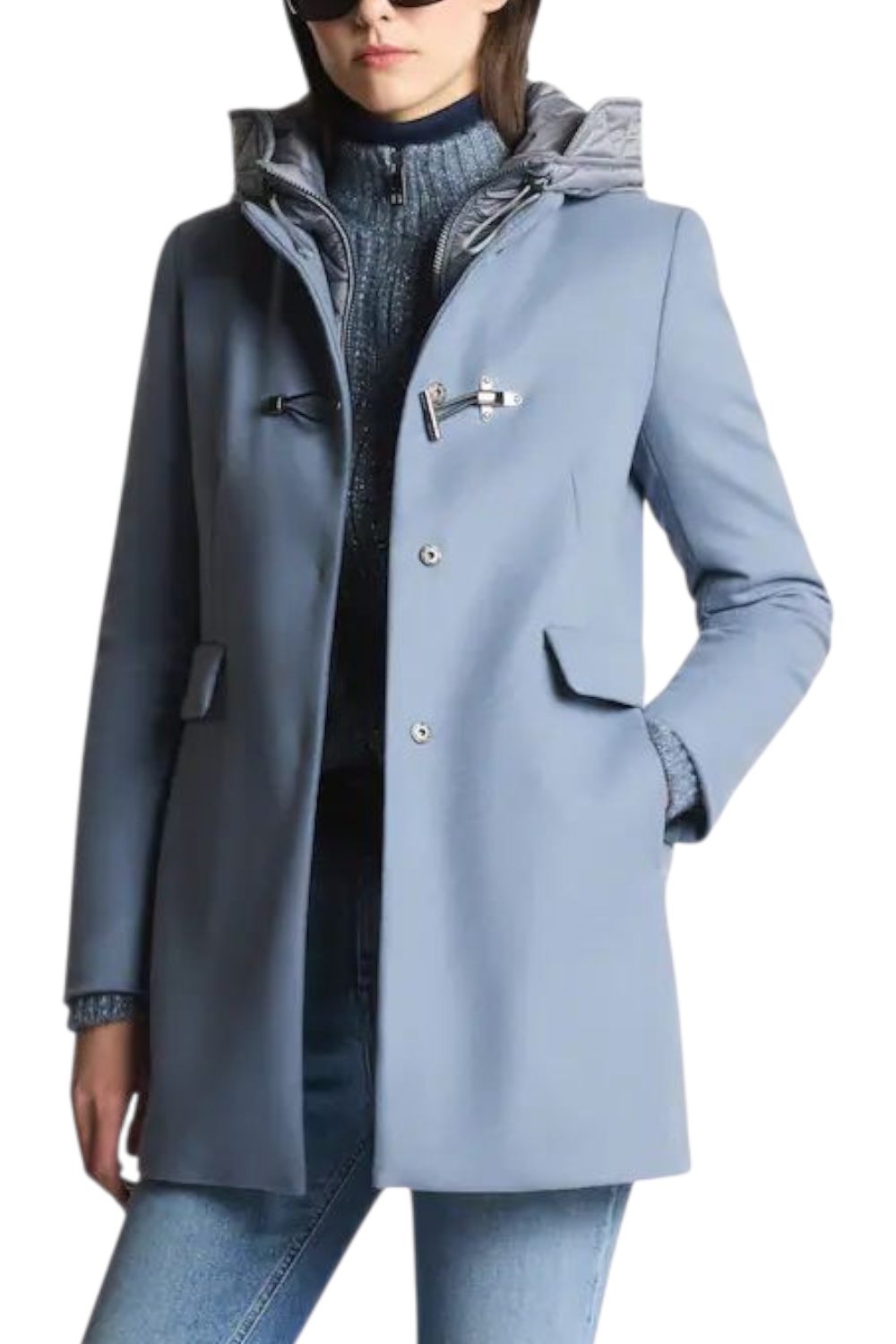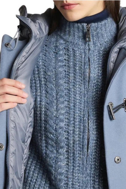 Cappotto donna di Fay ispirato al classico montgomery. Toggle Coat è il double front dal tocco urbano e femminile caratterizzato dalla chiusura ad alamaro.In soffice panno misto lana, con pettorina e cappuccio imbottiti in ovatta tecnica, è dotato di una chiusura con zip, automatici nascosti e alamaro Fay. È caratterizzato da un'etichetta interna con il nome del capo. Made in Italy. Fitting: regular. Composizione capo: 80% lana vergine, 20% poliammide, secondo tessuto 100% poliammide, fodera 100% poliammide, imbottitura 100% poliestere
