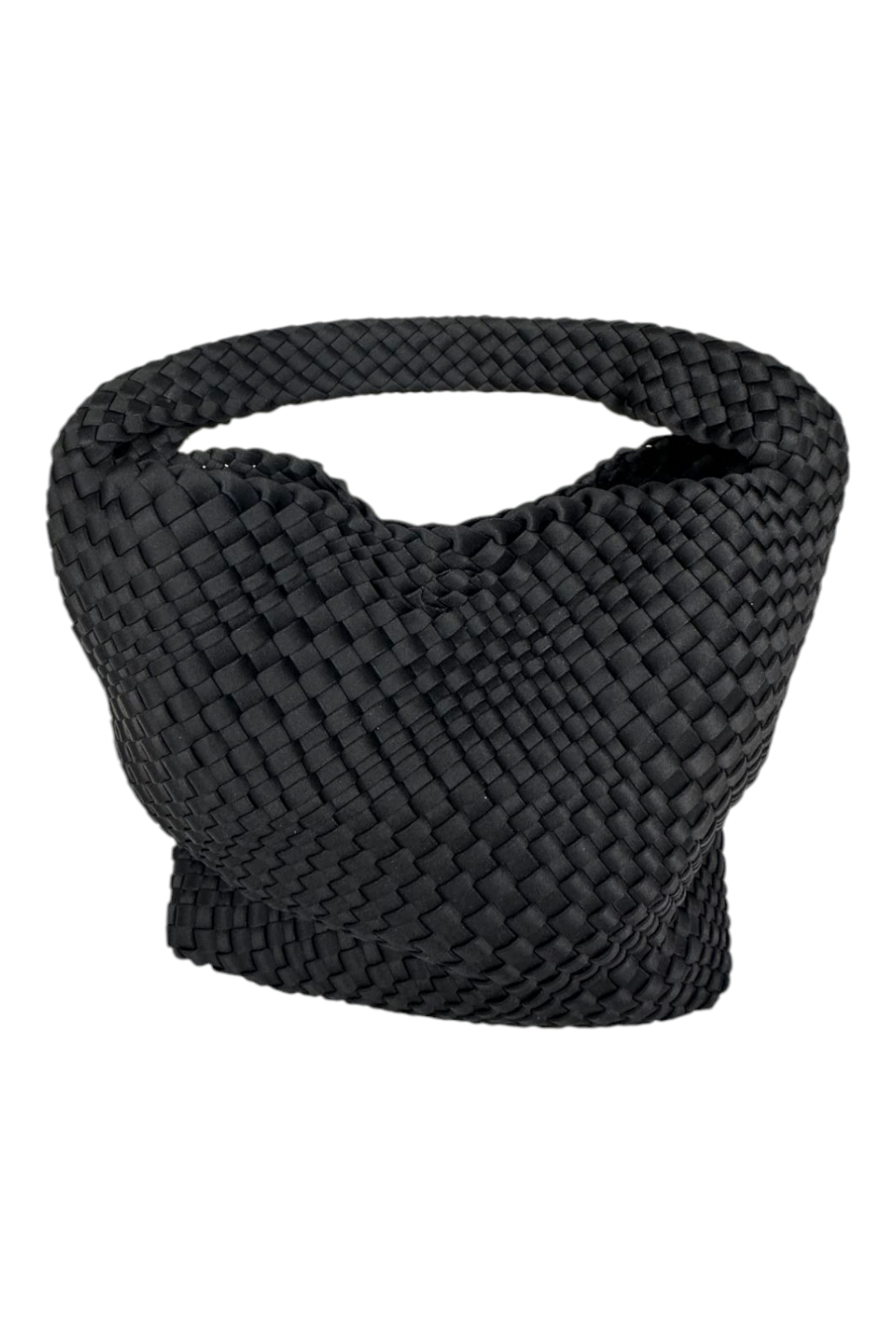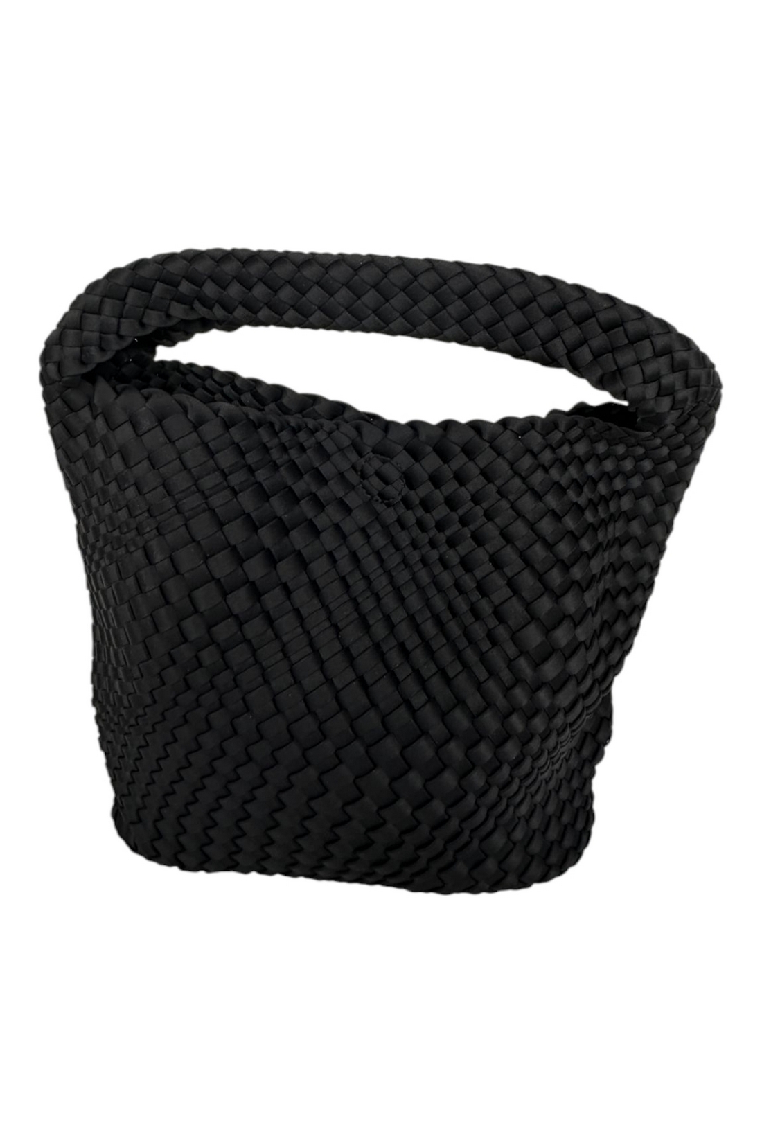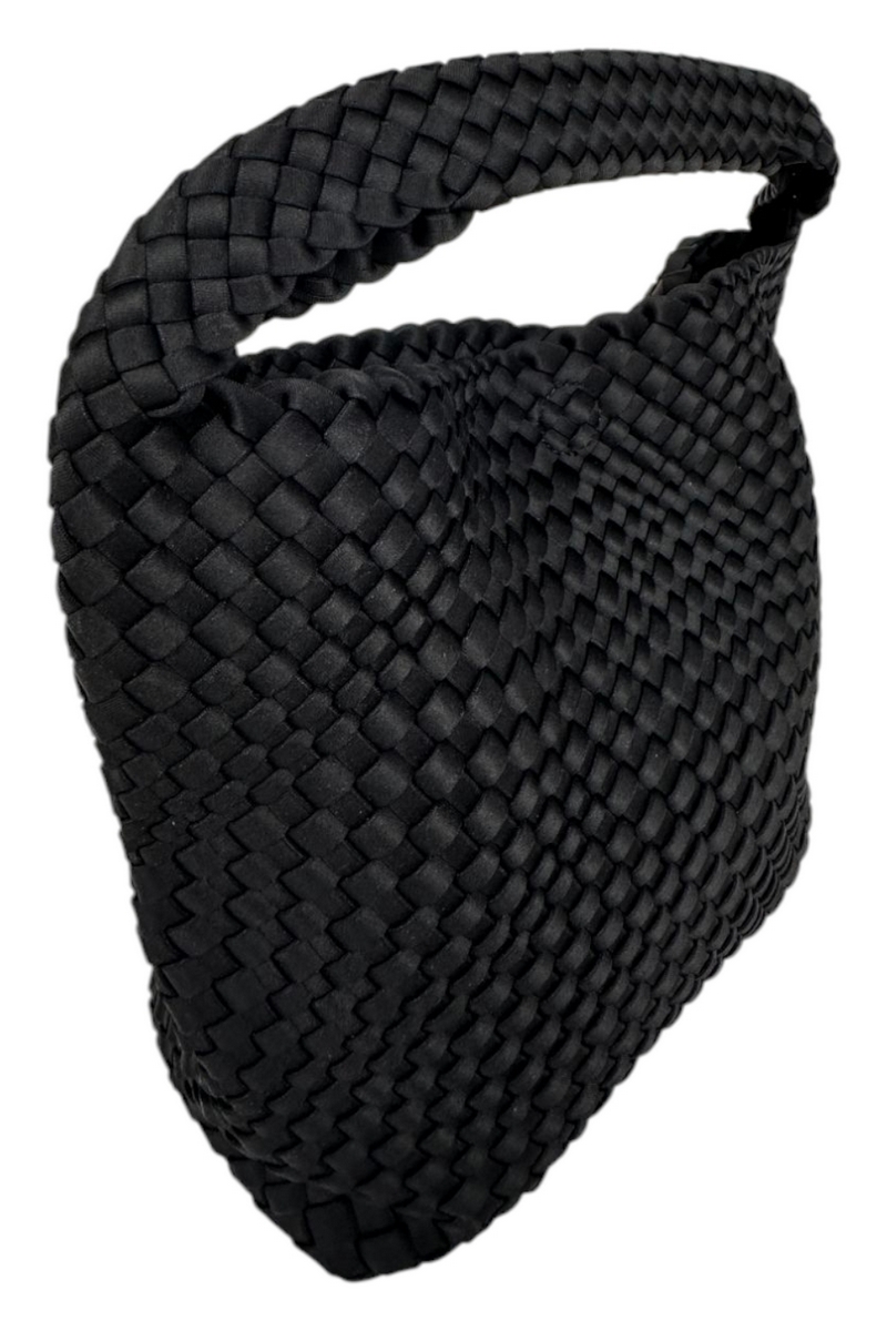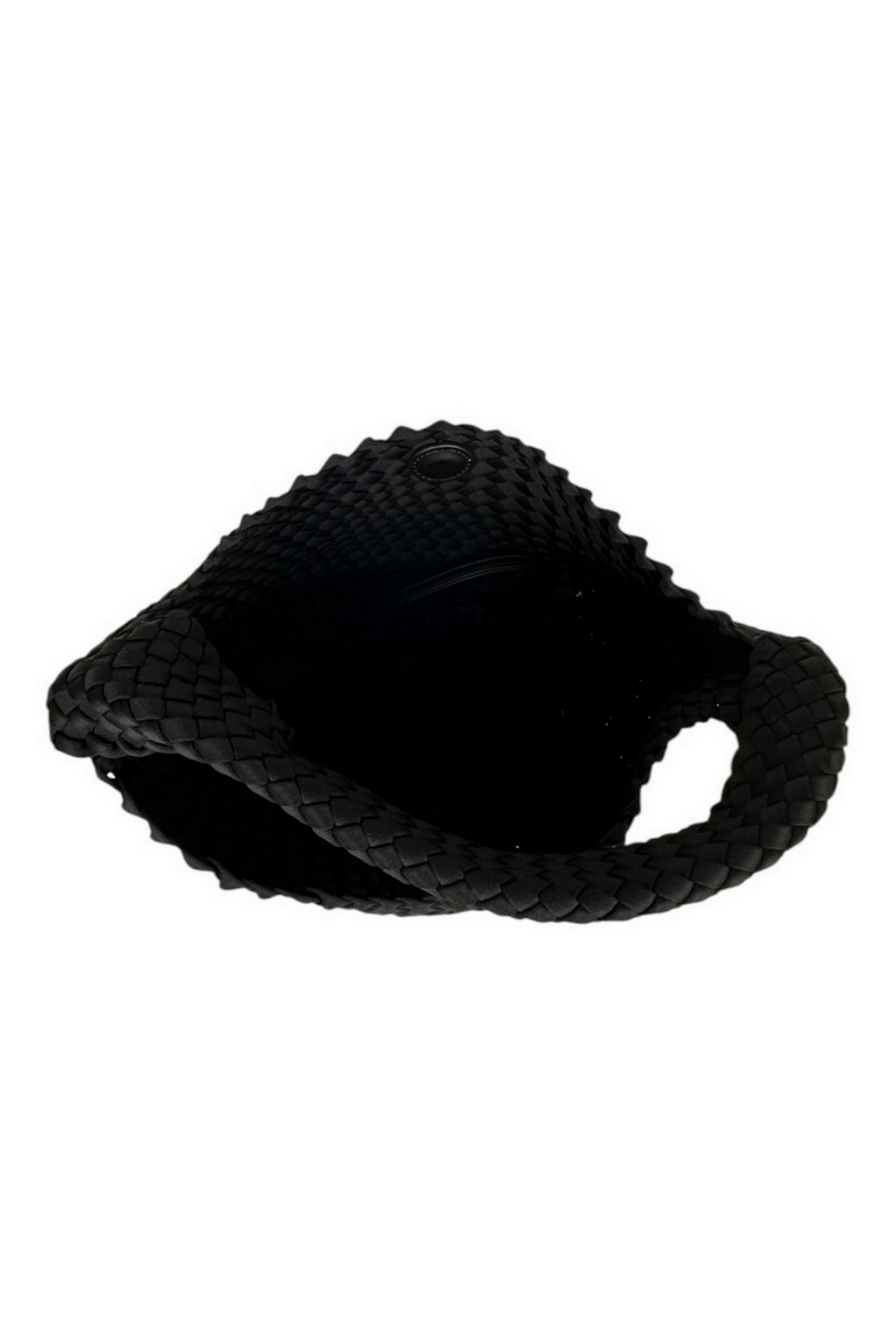 Bisaccia di Fez in neoprene intrecciato. Chiusura con automatico. Busta all'interno removibile. Dimensioni: 32x39x14 cm.