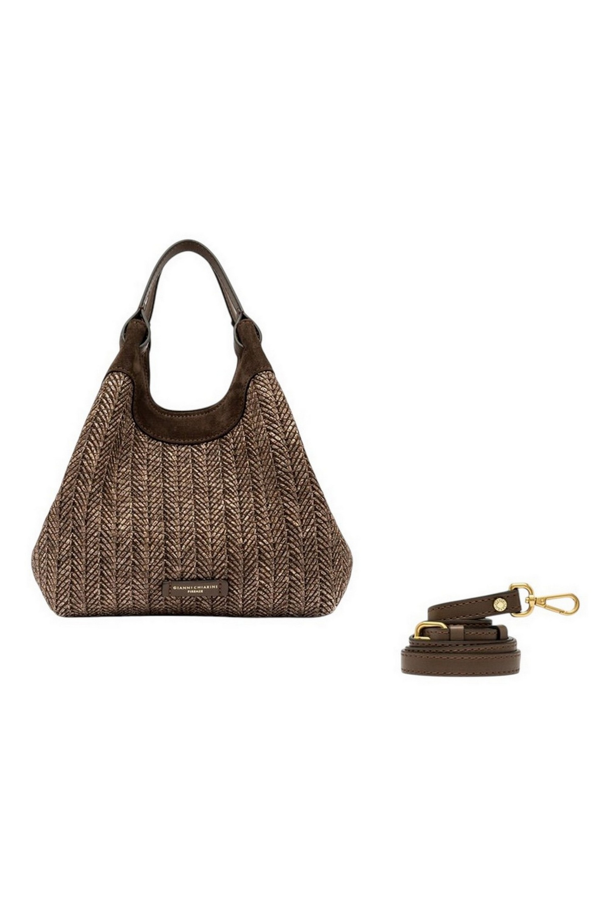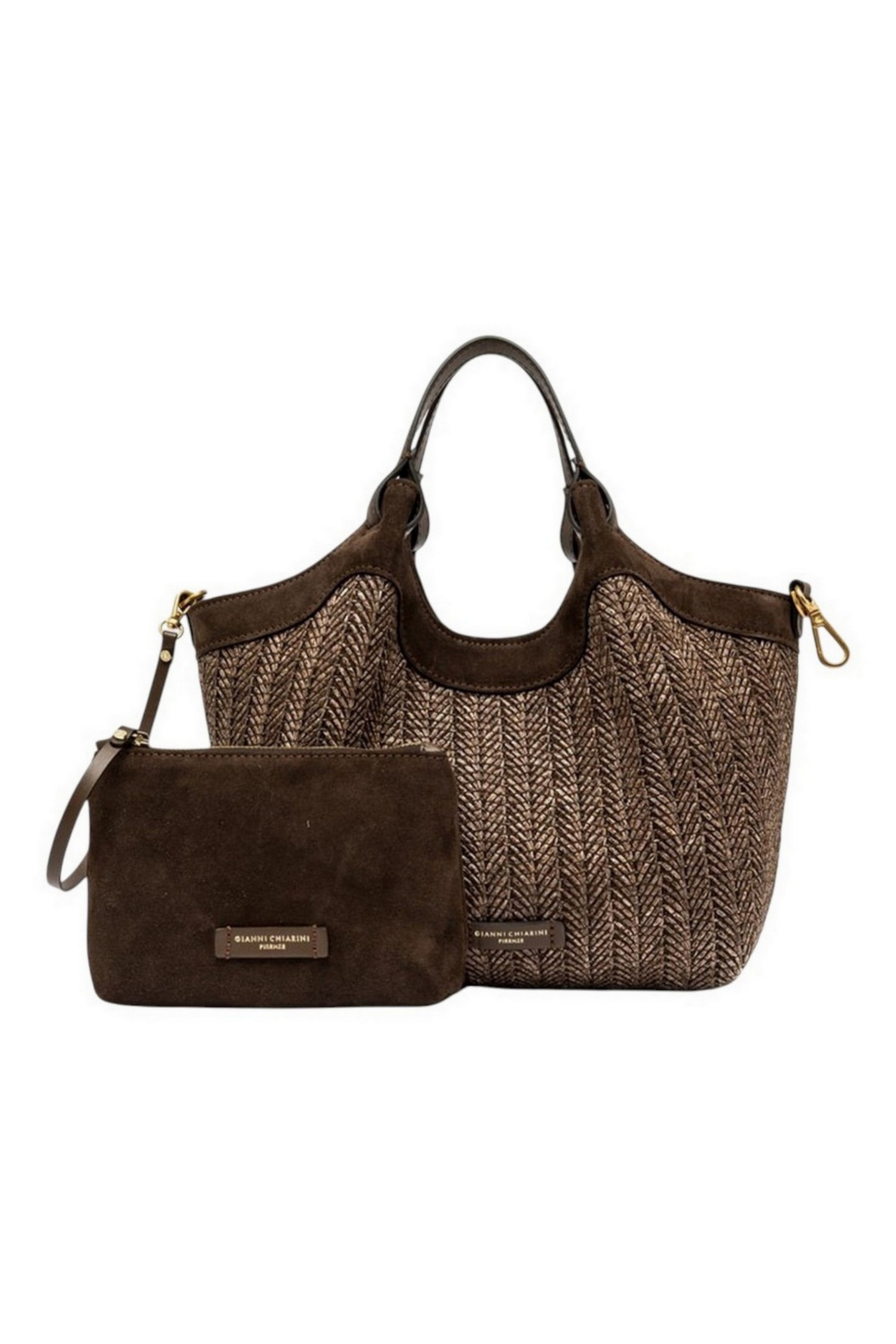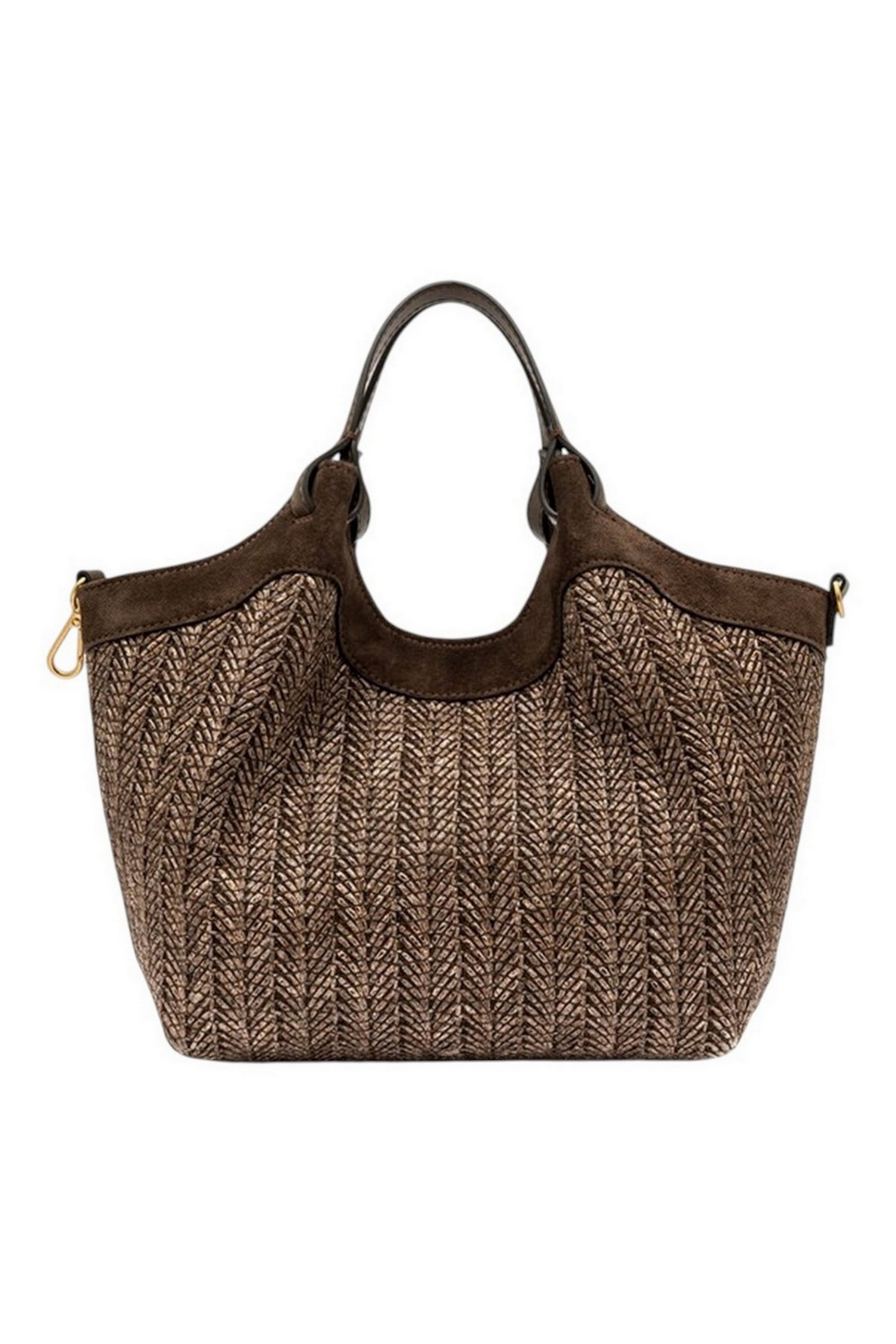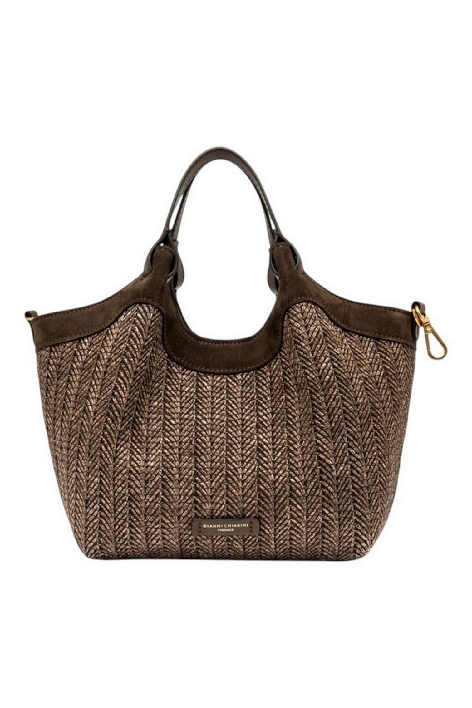 Borsa DUA media di Gianni Chiarini dal design semplice ma contemporaneo, è l'accessorio perfetto per chi desidera un tocco squisitamente summer, senza rinunciare alla praticità. Realizzata in paglia intrecciata, evoca un fascino rustico chic. Dotata di un monoscomparto sfoderato, può essere portata a mano o a spalla. Dimensioni: 24x27x12 cm.