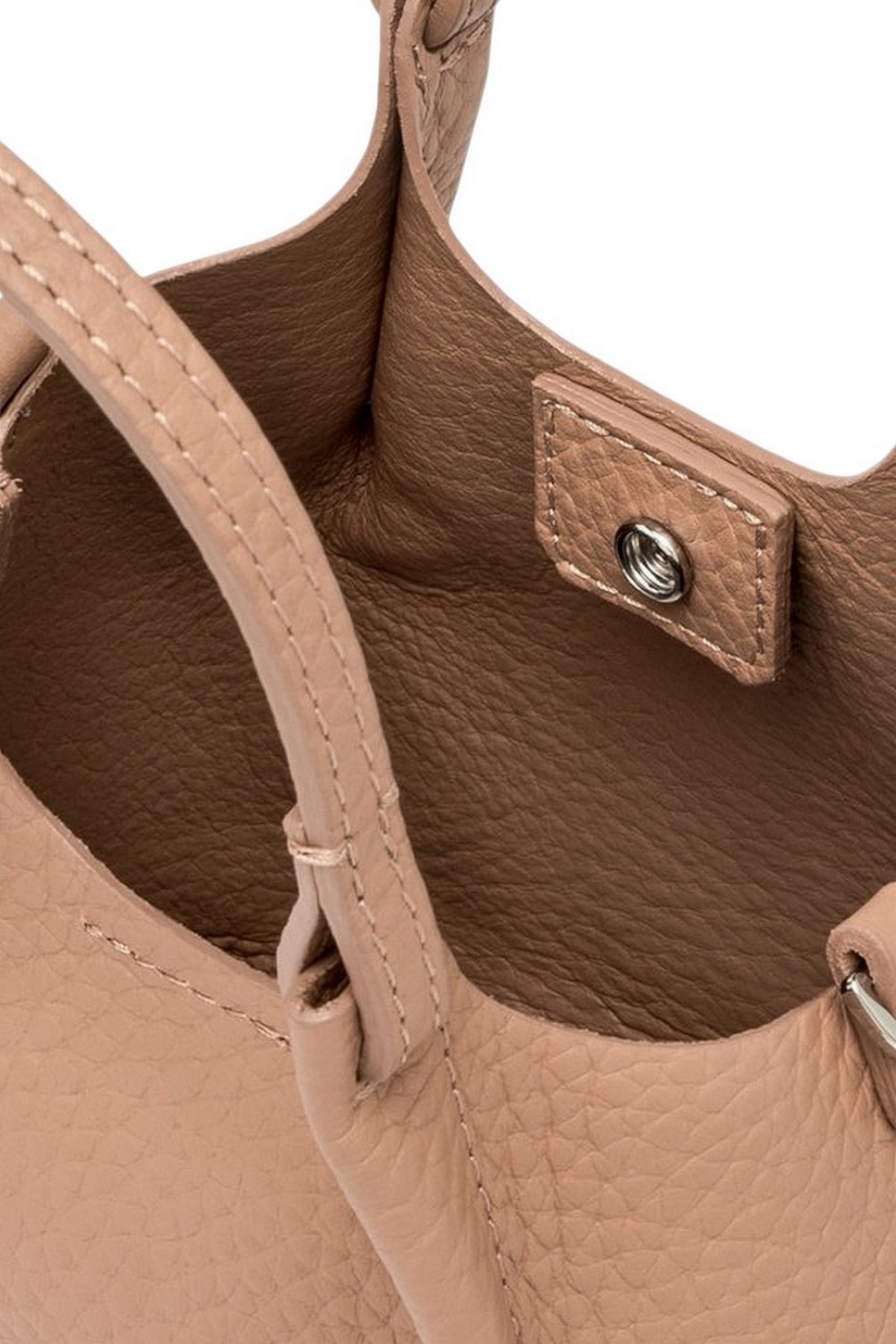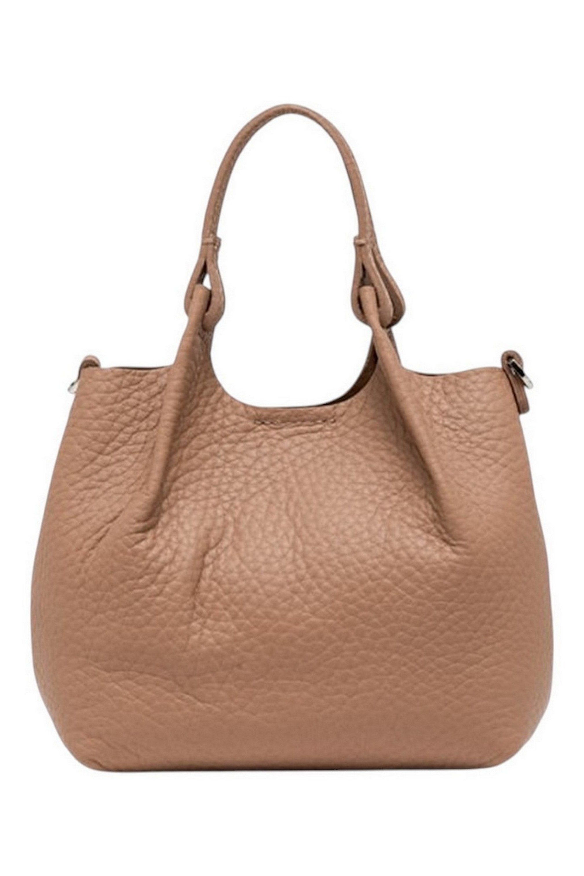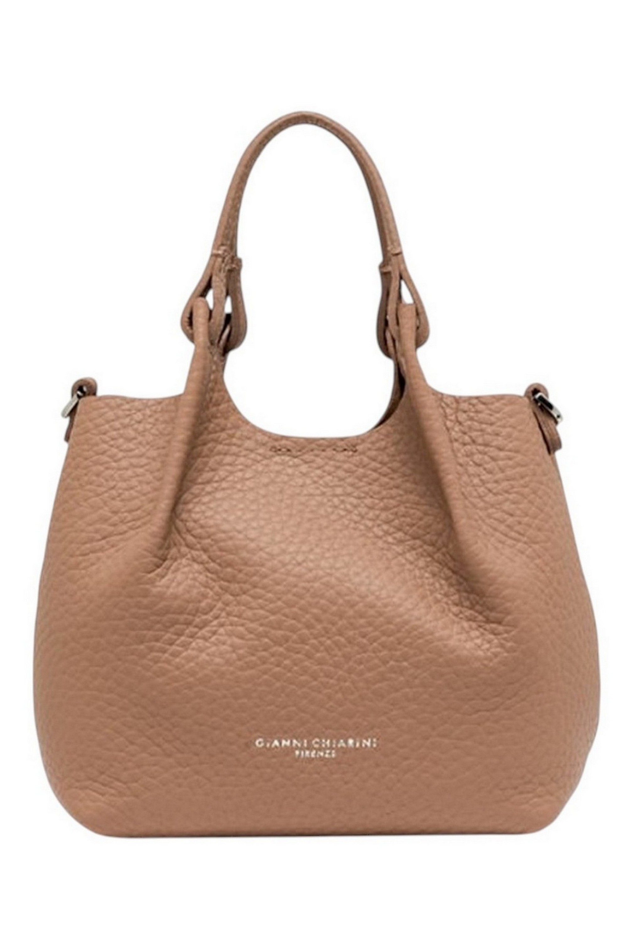 Borsa DUA di Gianni Chiarini realizzata in pelle bubble double, caratterizzata da una texture unica. Dotata di un monoscomparto sfoderato, presenta profili superiori in pelle martellata e doppi manici in tono. Pratica ed essenziale, è perfetta per completare ogni look con stile. Può essere portata a mano o a spalla. Dimensioni: 19x20x8 cm.