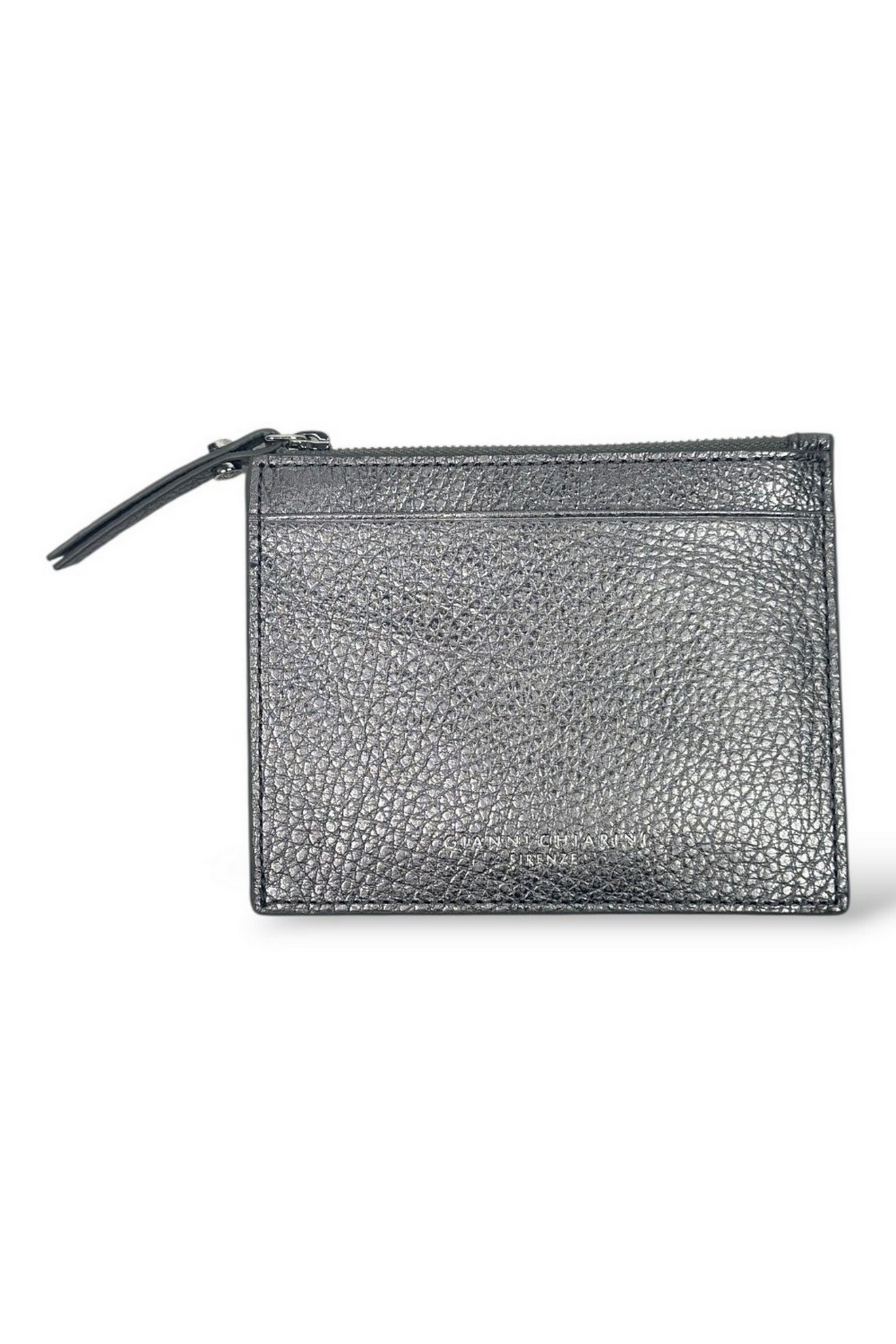Portacarte by Gianni Chiarini Firenz. Realizzato in pelle martellata laminata. Presenta una chiusura con zip on top e tirazip in tono. Svariate tasche piatte multiuso sul retro. Dimensioni: 13x7,7x3 cm.