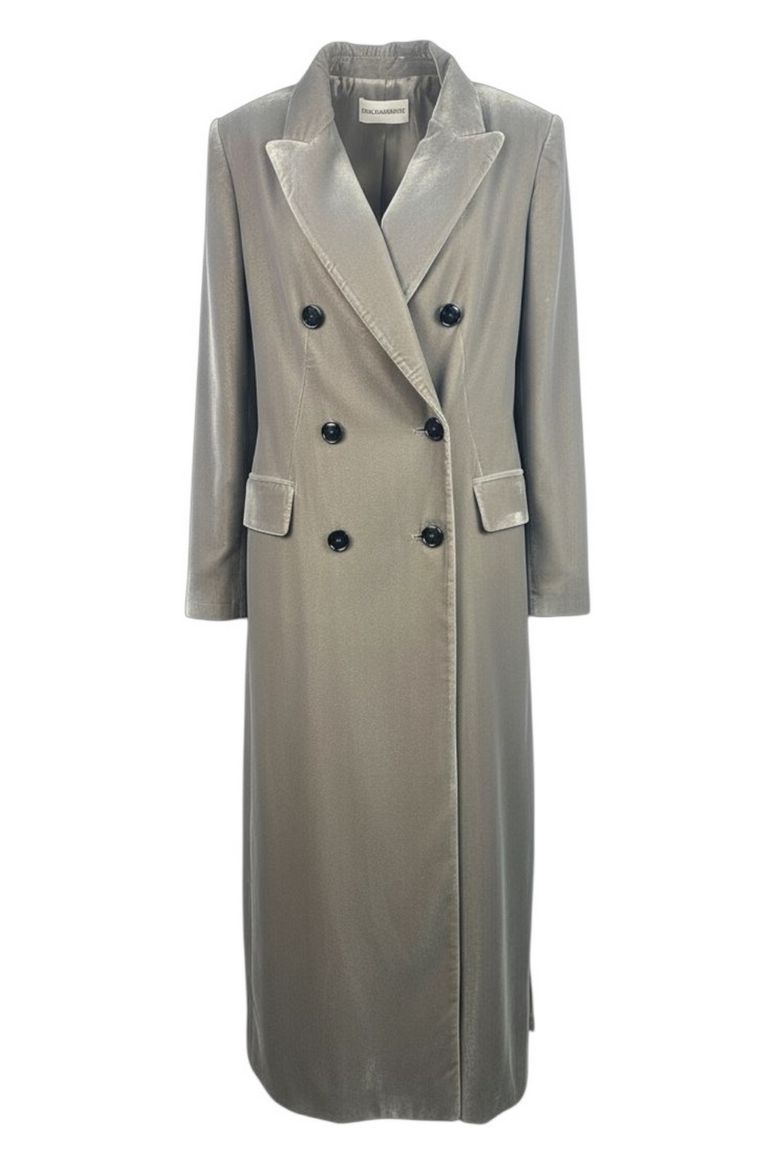Cappotto di Gnossienne in velluto liscio. Doppiopetto. Tasche sul davanti. Spacchi laterali. Foderato. Composizione: 100% poliestere. Made in Italy.