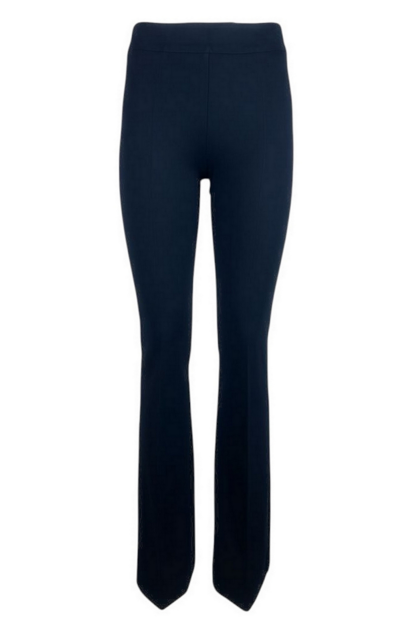 Pantalone di Gnossienne in punto milano. Modello a zampa. Senza bottoni. Vita con elastico.