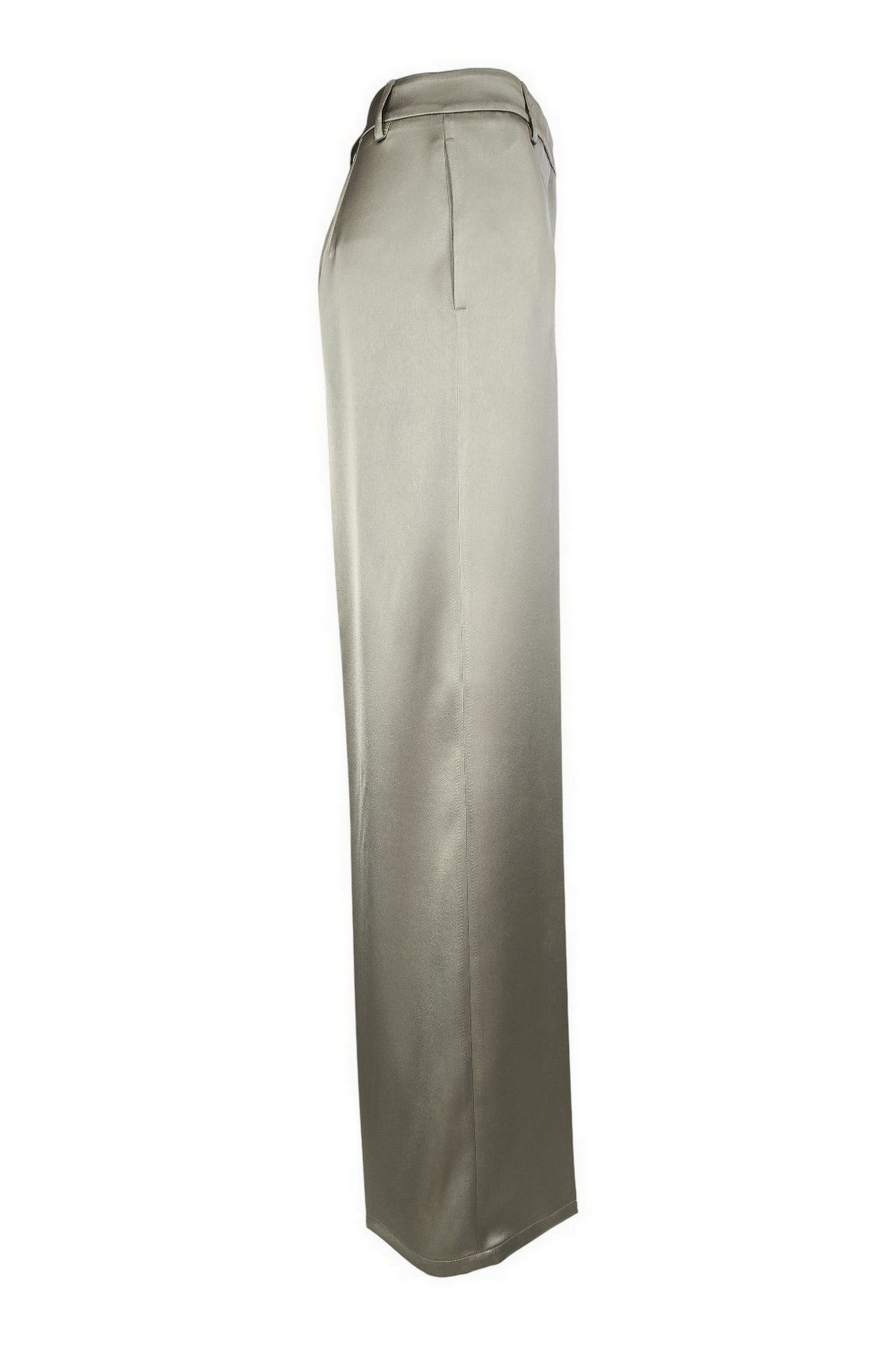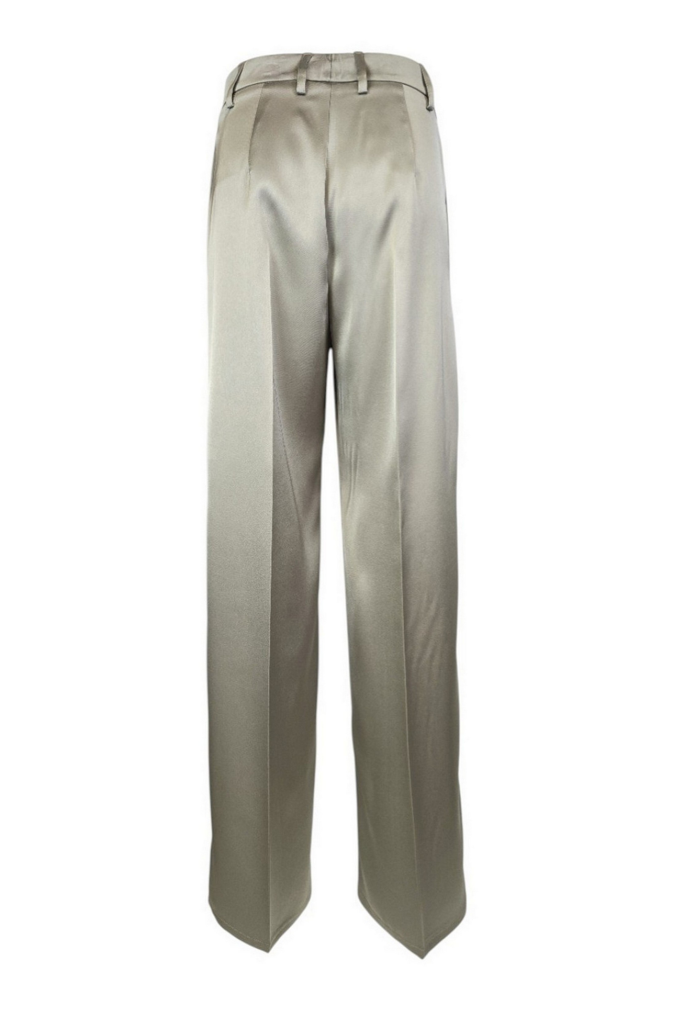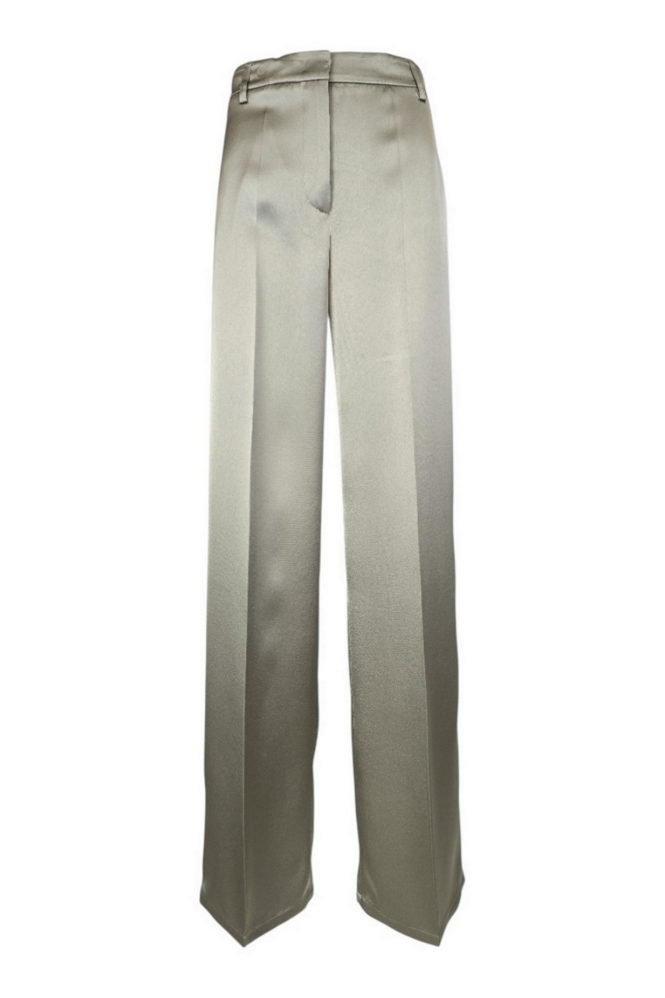 Pantaloni di Gnosienne in raso. Modello gamba larga. Chiusura con zip. Passanti in vita. Tasche laterali. Composizione: 100% poliestere. Made in Italy.