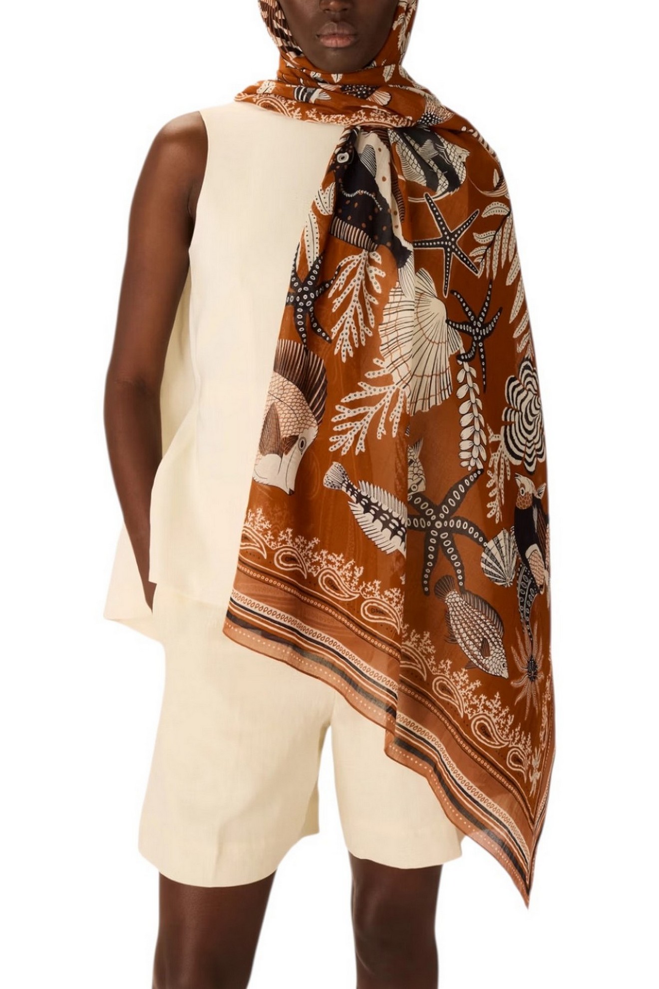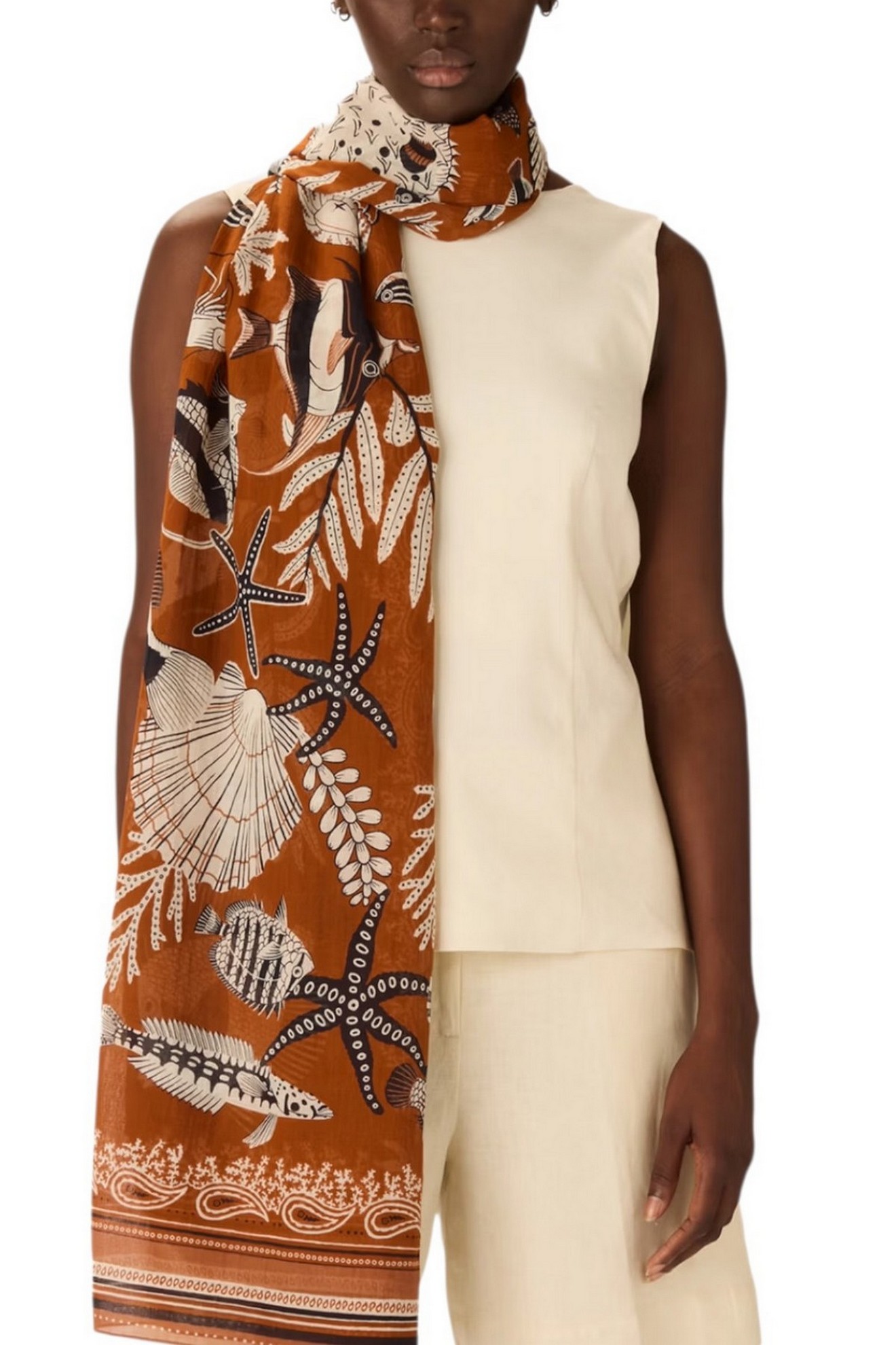 Sciarpa donna di Inoui Editions fantasia Neptune. Composizione: 100% cotone. Misure 100x190 cm.