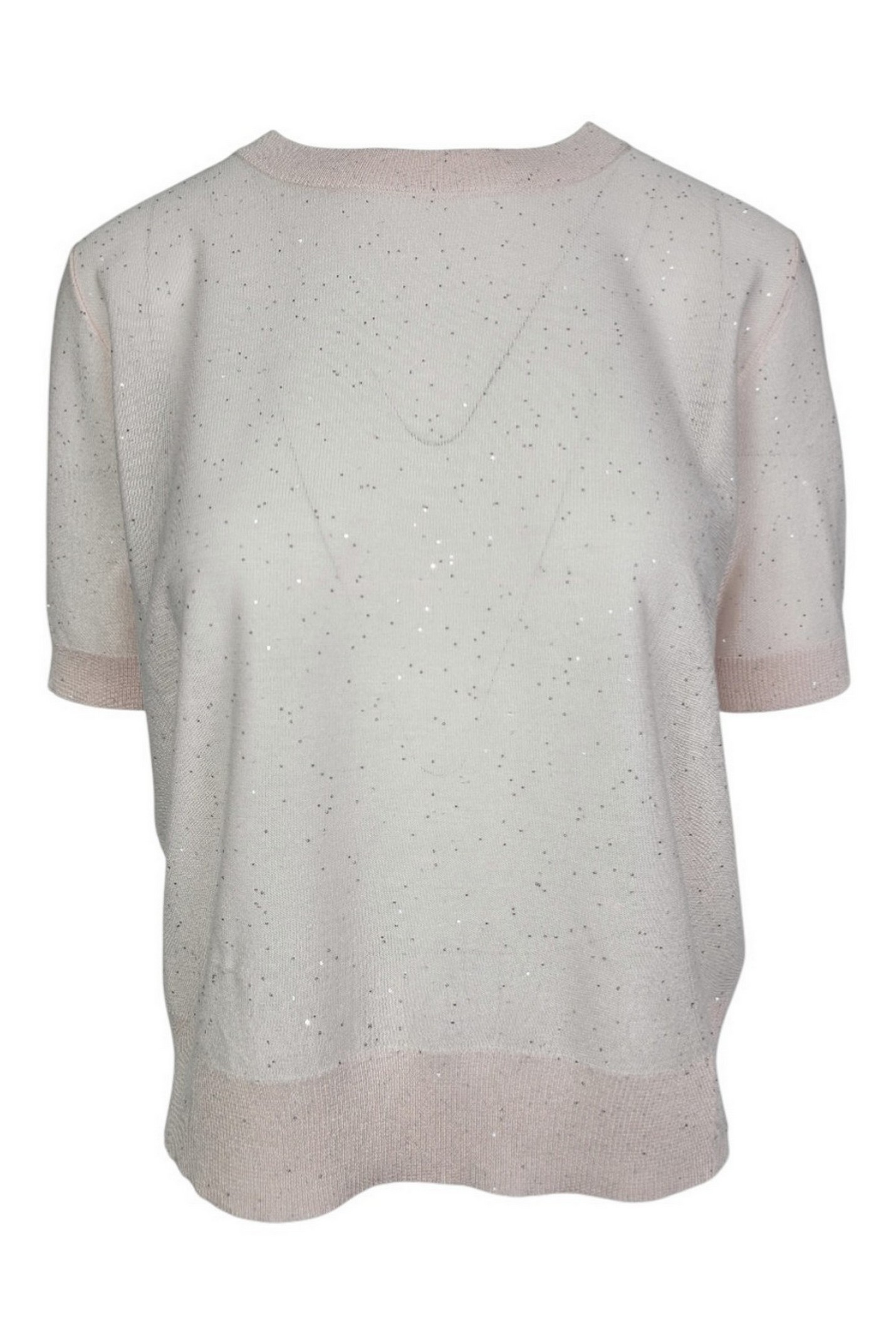 Maglia di Kangra in filo. Mezze maniche. Girocollo. Dettagli punti luce. Vestibilià regolare. Composizione: 85% viscosa, 13% poliestere, 2% altre fibre.