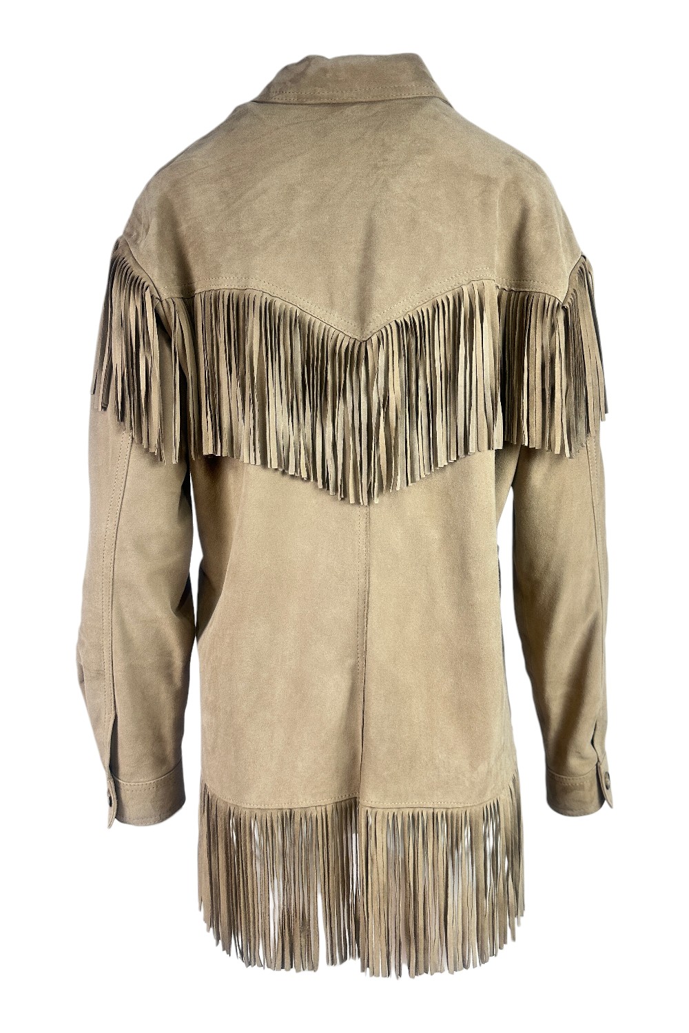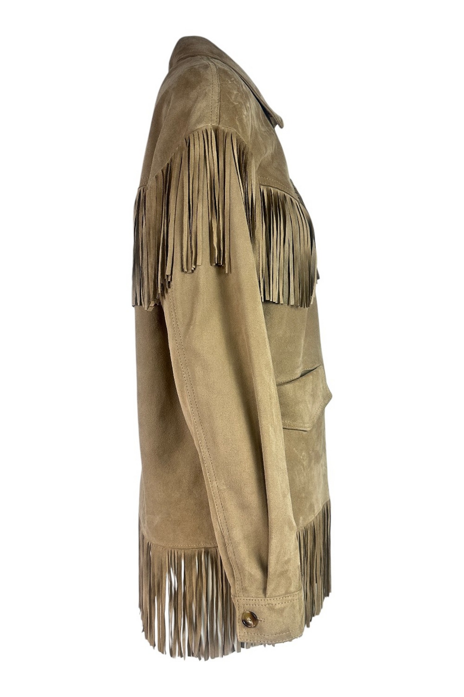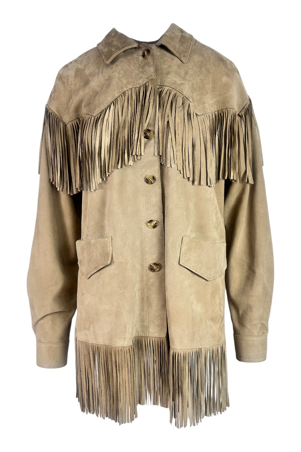 Giacca di Kiltie modello Bea in camoscio. Modello camicia. Chiusura con bottoni. Tasche. Dettagli frange. Sfoderata. Vestibilità regolare. Composizione: 100% pelle. Made in Italy.