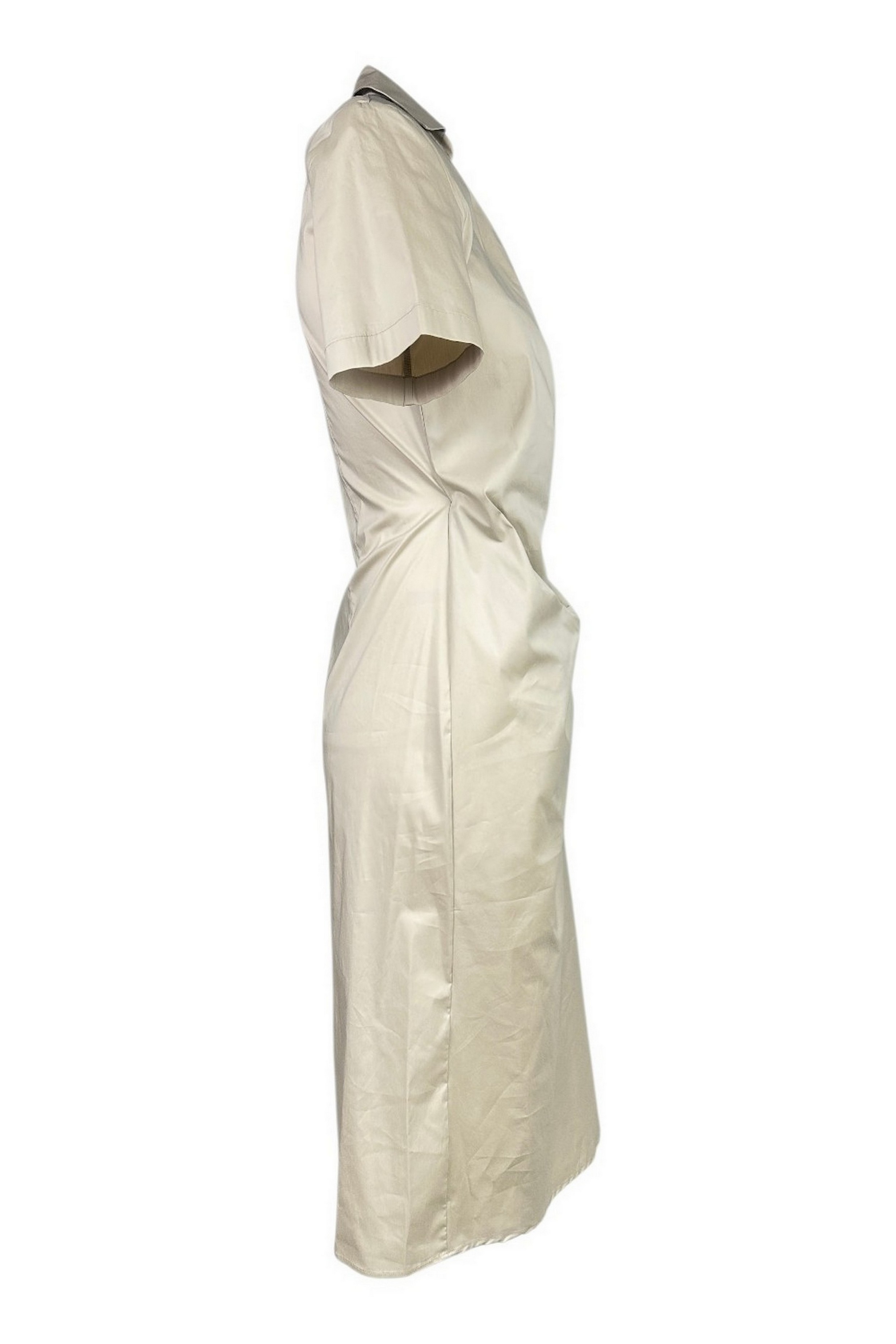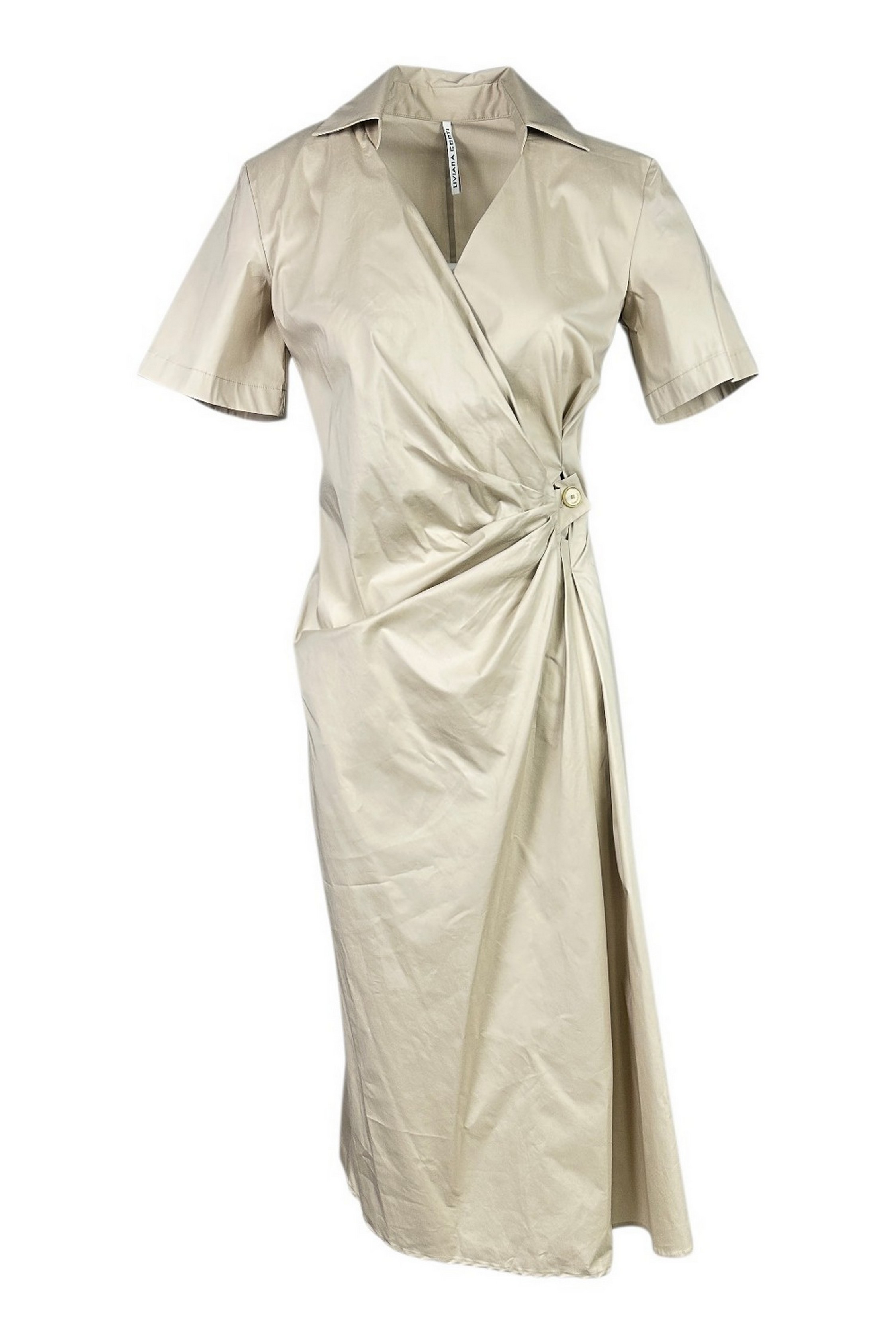Abito di Liviana Conti in popeline stretch. Modello chemisier a portafoglio. Mezza manica. Vestibilità regolare. Composizione: 68% cotone, 28% poliammide, 4% elastane. Made in Italy.