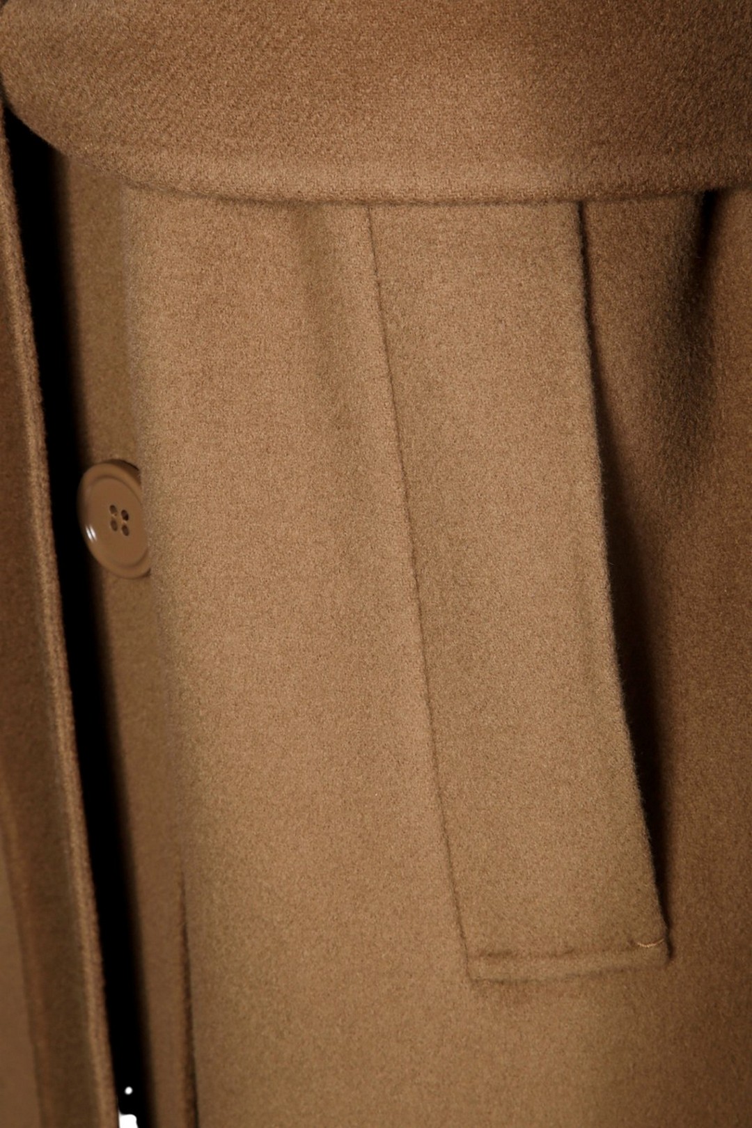 Il design presenta collo a rever, maniche lunghe a giro basso e una sofisticata chiusura doppiopetto con bottoni a vista. Le tasche a filettone sui fianchi aggiungono praticità senza rinunciare allo stile. Il cappotto è sfoderato, perfetto per indossarlo nelle mezze stagioni o stratificare nei mesi invernali.