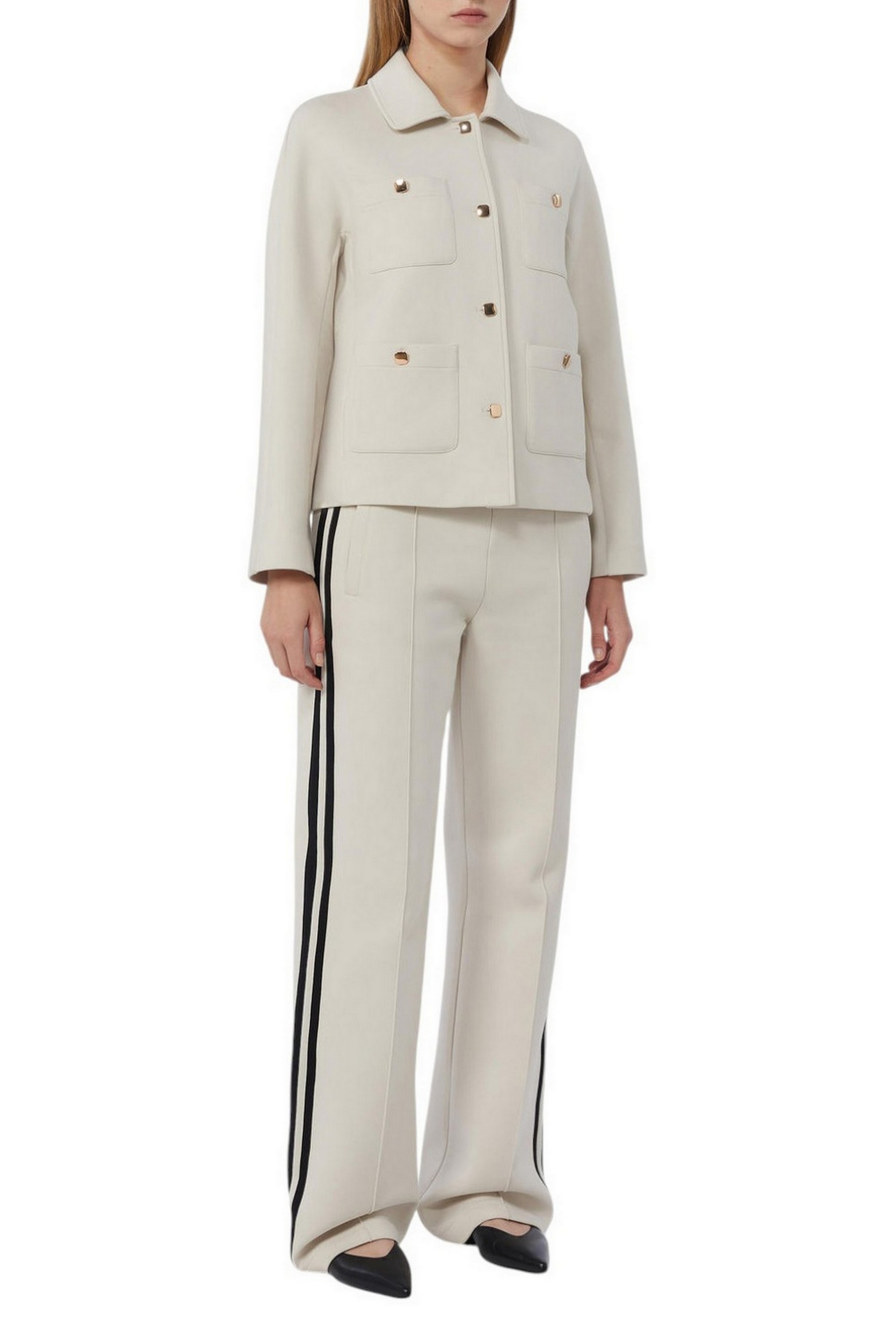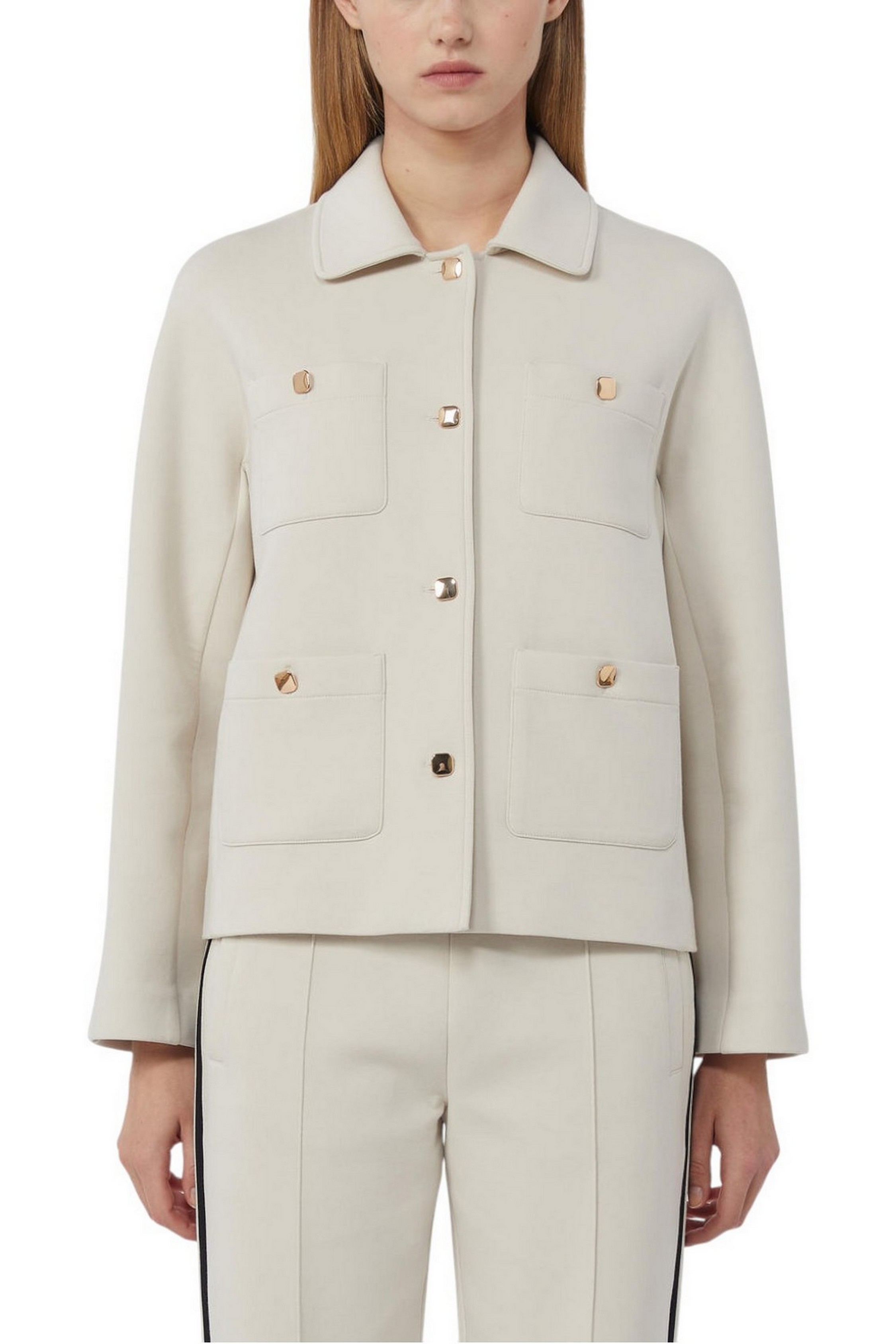 Giacca crop di MaxMara S caratterizzata da 4 tasche a toppa con bottoni in metallo applicate sul davanti. iacca in jersey scuba. Linea boxy. Colletto a camicia. Maniche lunghe a kimono. Chiusura frontale con bottoni a vista color oro. Fondo dritto. Sfoderata. Tessuto a maglia: 78% Cotone, 16% Poliestere, 6% Elastan