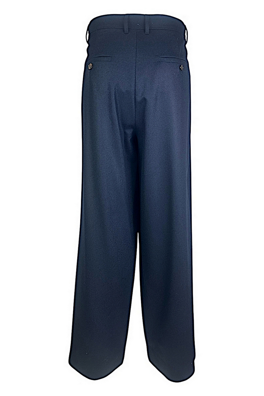 Pantalone wide leg di MxMara S, caratterizzato da una silhouette con gamba larga e doppia pinces sul davanti. Pantalone in flanella di lana stretch. Chiusura con listino alto in vita, zip con patta e gancetto. Tasche alla francese sui fianchi. Tasche a filetto con bottone in corno sul retro. Passanti per cintura. Composizione: 98% Lana vergine, 2% Elastan.