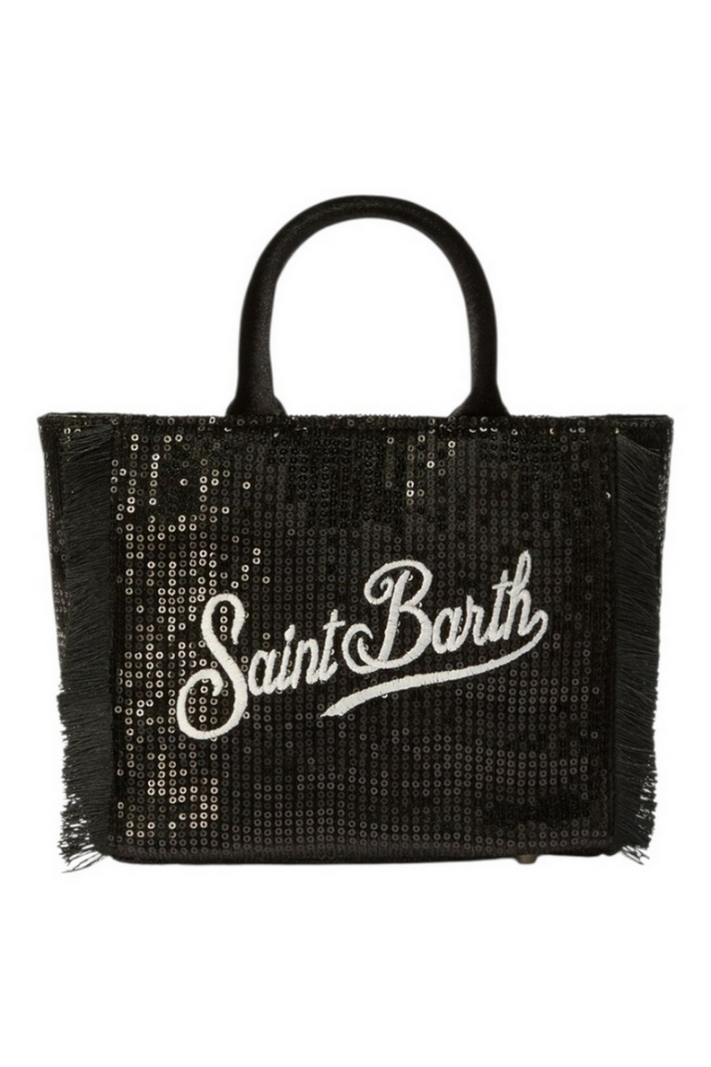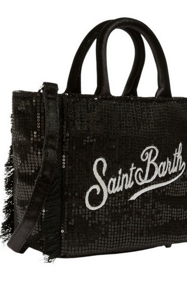 Borsa Vanity Mini Velvet di Mc2 Saint Barth con paillettes. Illumina ogni outfit. Borsa a mano. Velluto e paillettes. Manici in tessuto. Tracolla removibile e regolabile. Tasca interna. Logo ricamato, dettaglio frange. Dimensioni: 20 x 19 x 10 cm. Composizione: 100%Poliestere.
