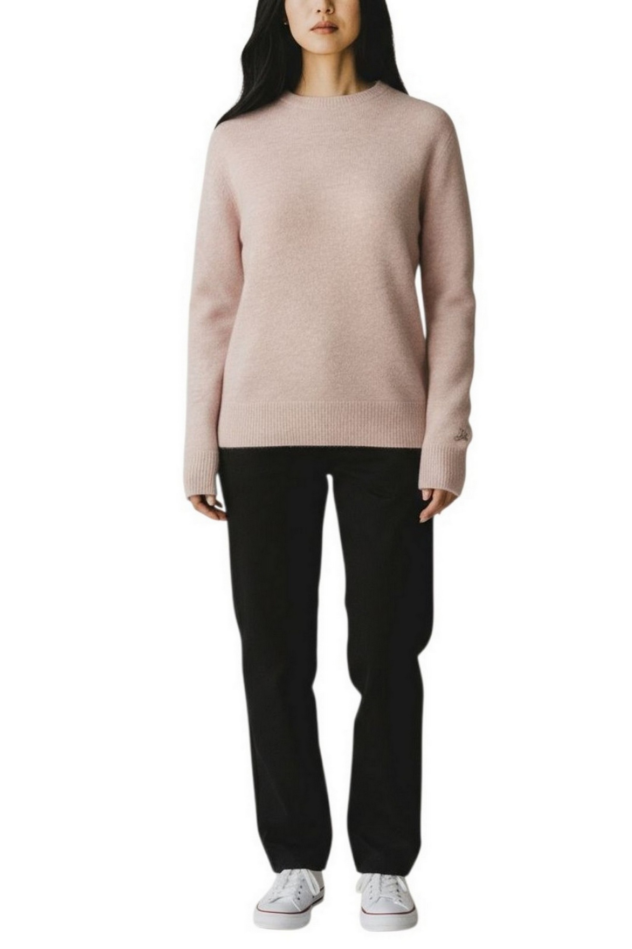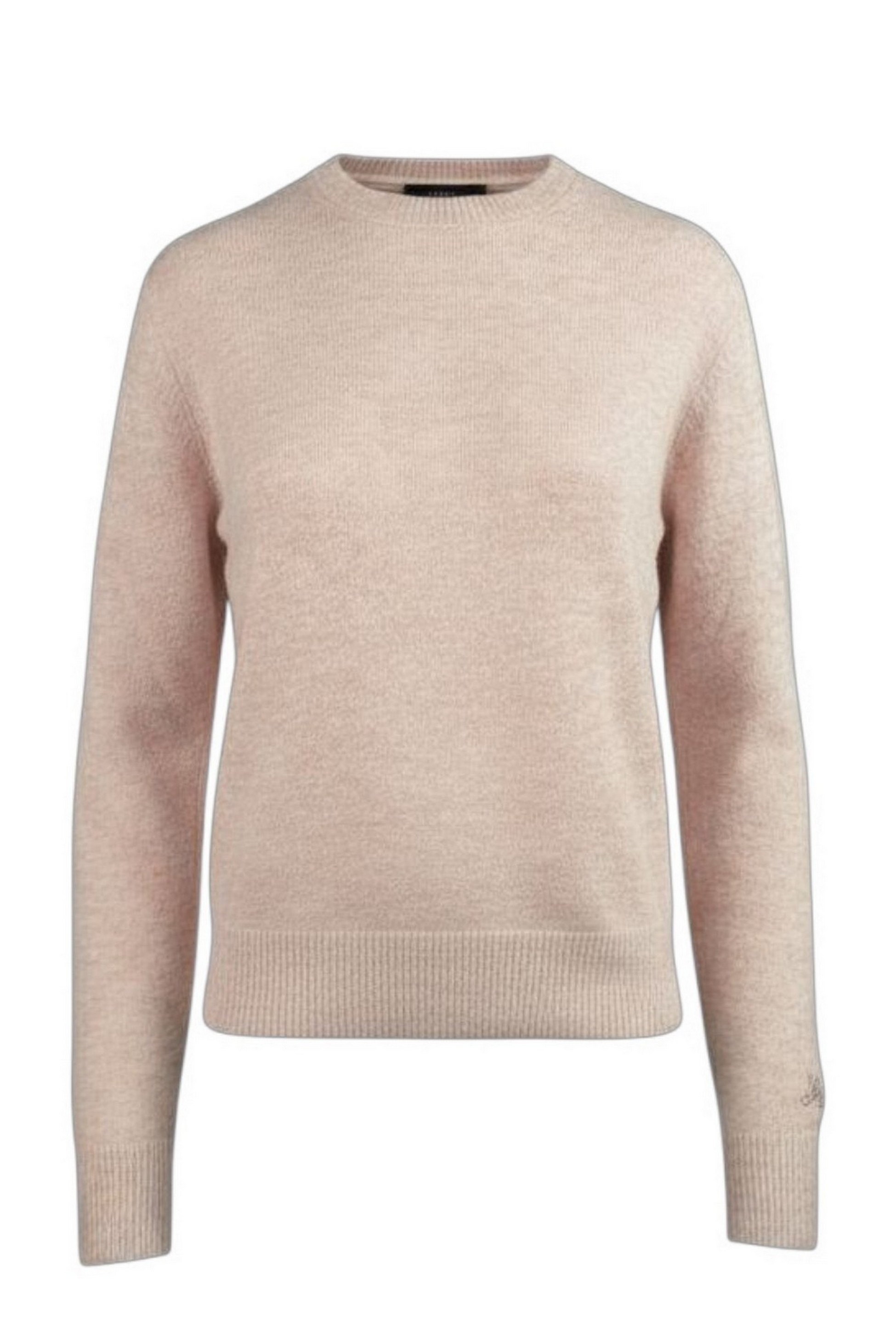 Maglione girocollo da donna. Collo, polsini e orlo a coste. Logo St Barth ricamato attorno allo scollo.