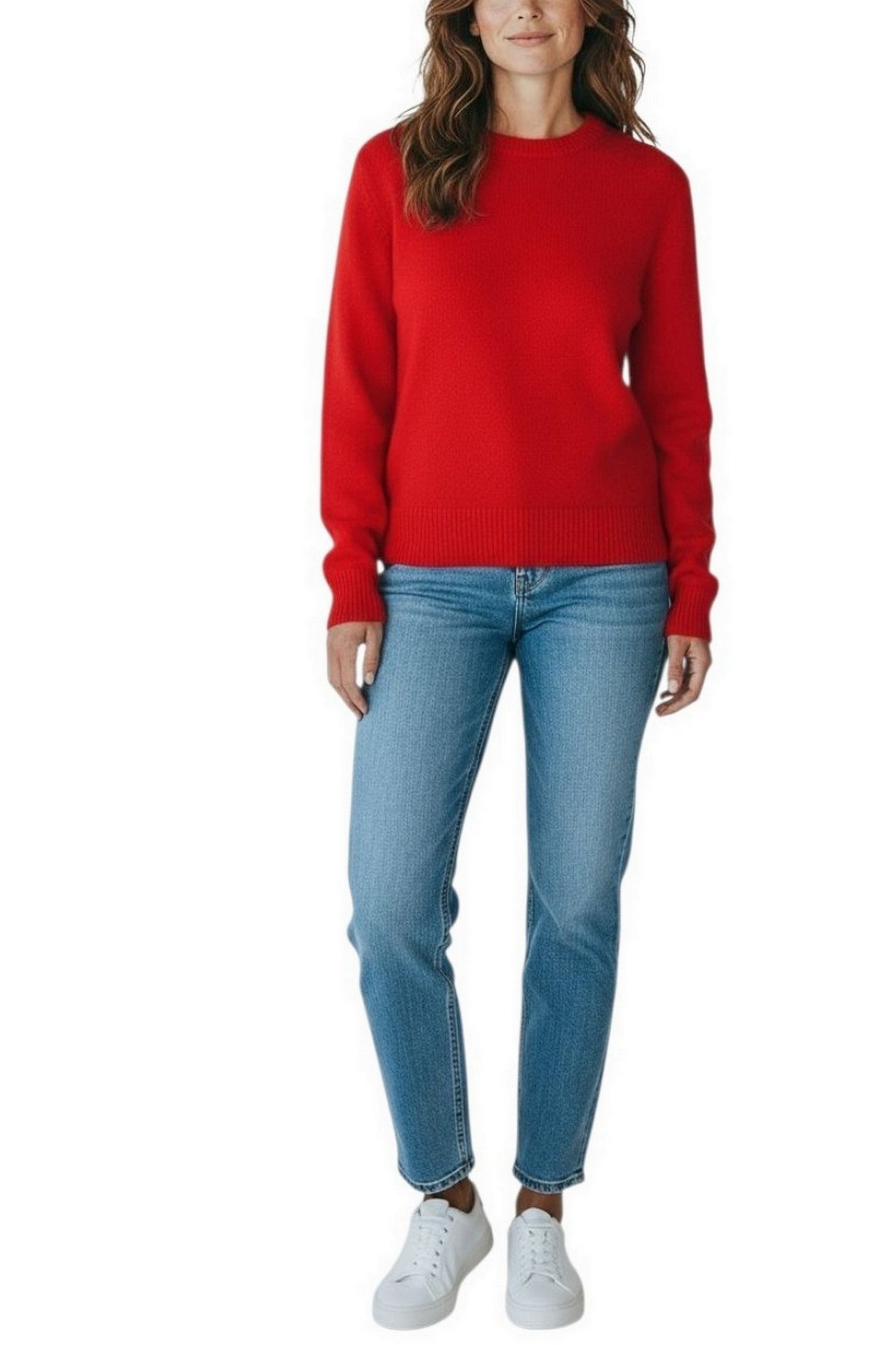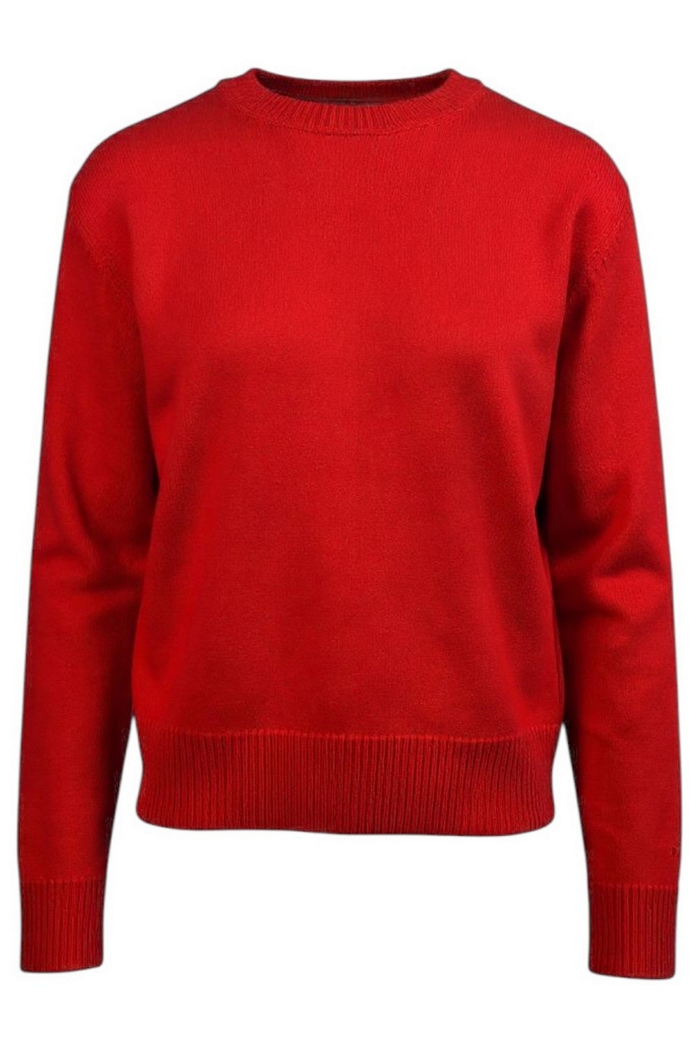 Maglione girocollo da donna. Collo, polsini e orlo a coste. Logo St Barth ricamato attorno allo scollo.