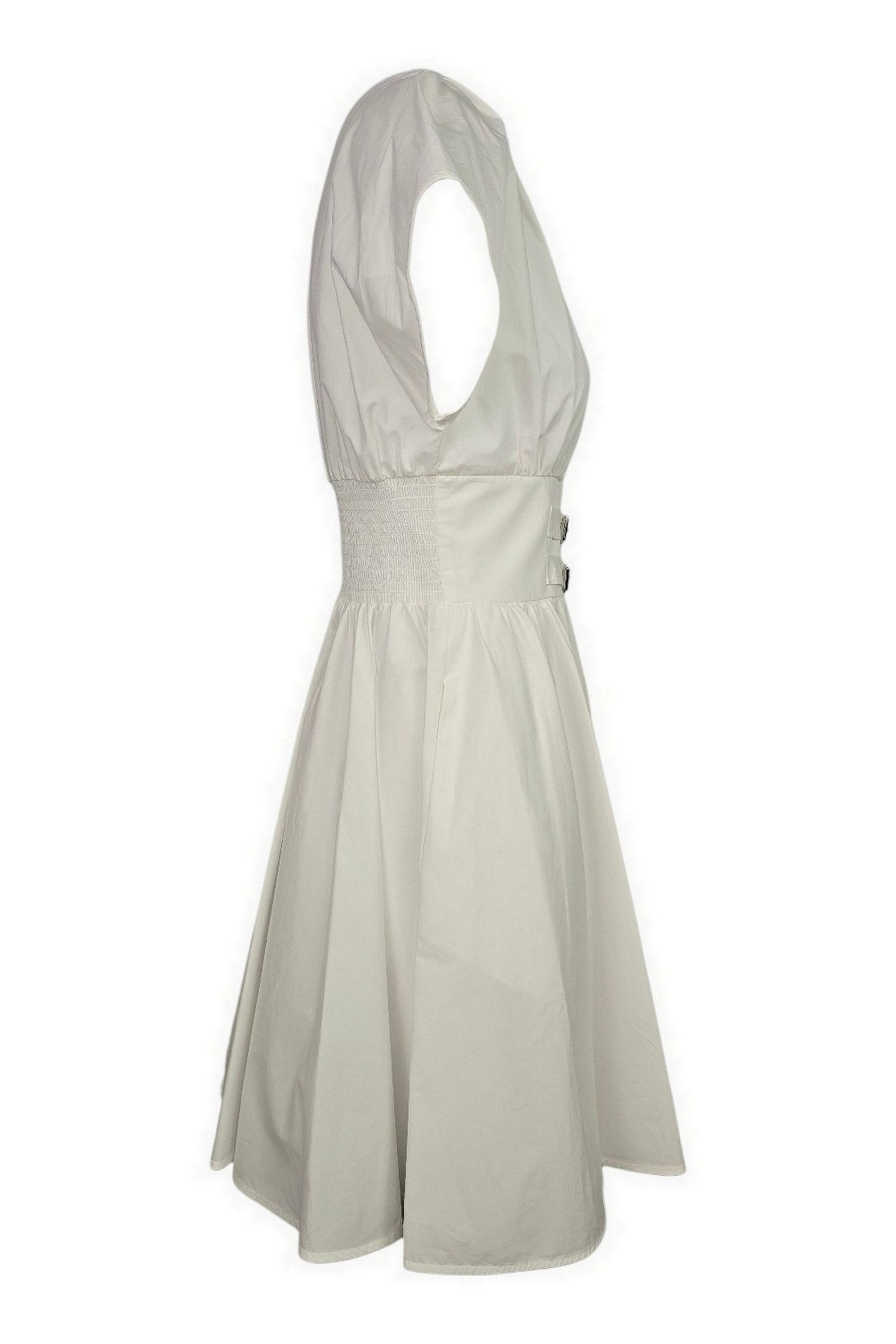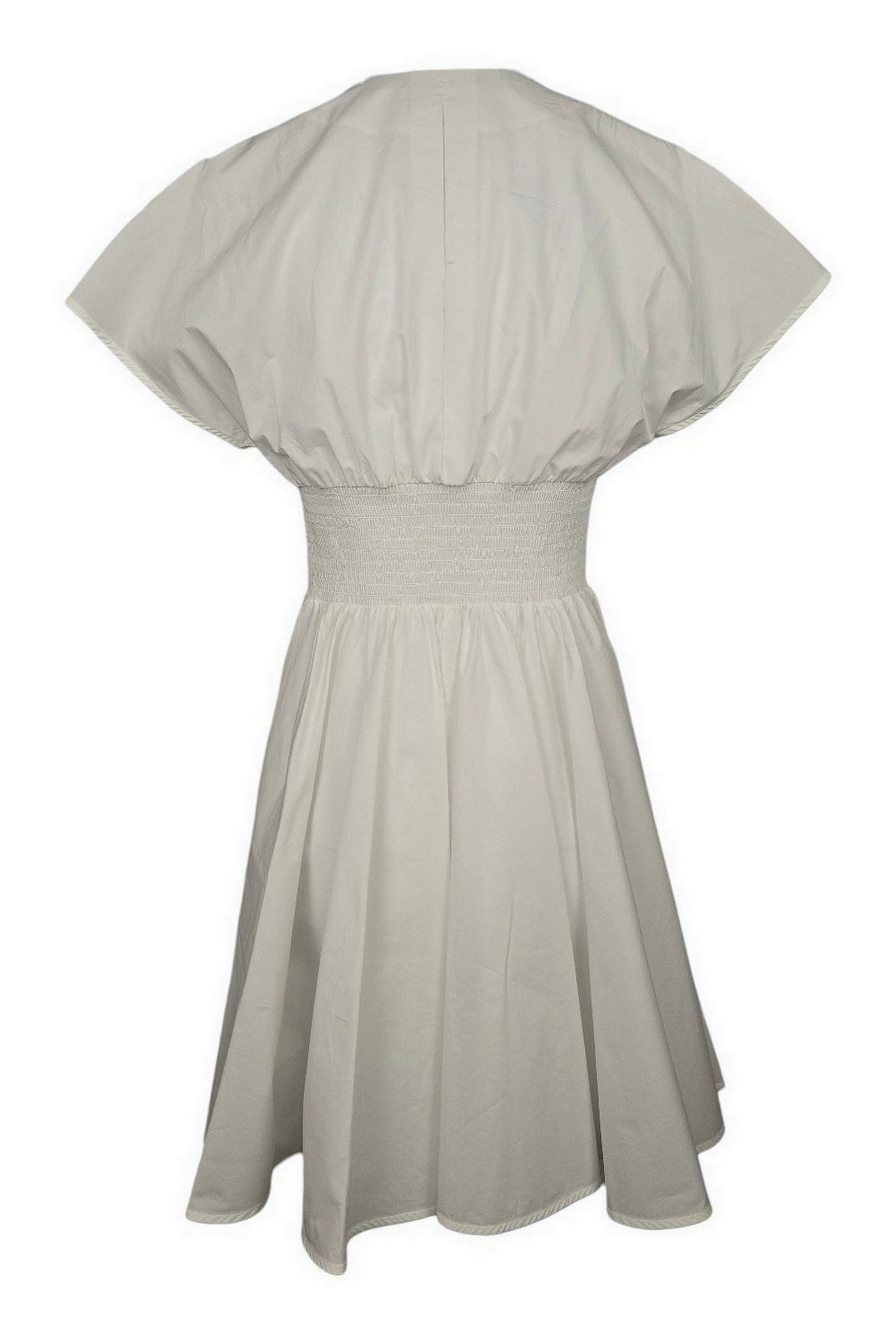Abito di MEIMEIJ in cotone. Modello a ruota. Mezze maniche. Elastico in vita sul retro. Scollo a v. Dettagli cinturini in vita. Vestibilità regolare. Composizione: 100% cotone. Made in Italy.
