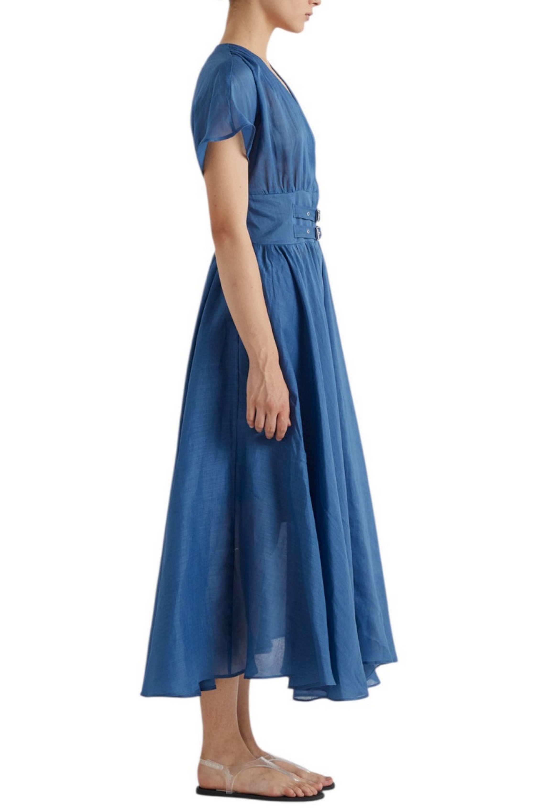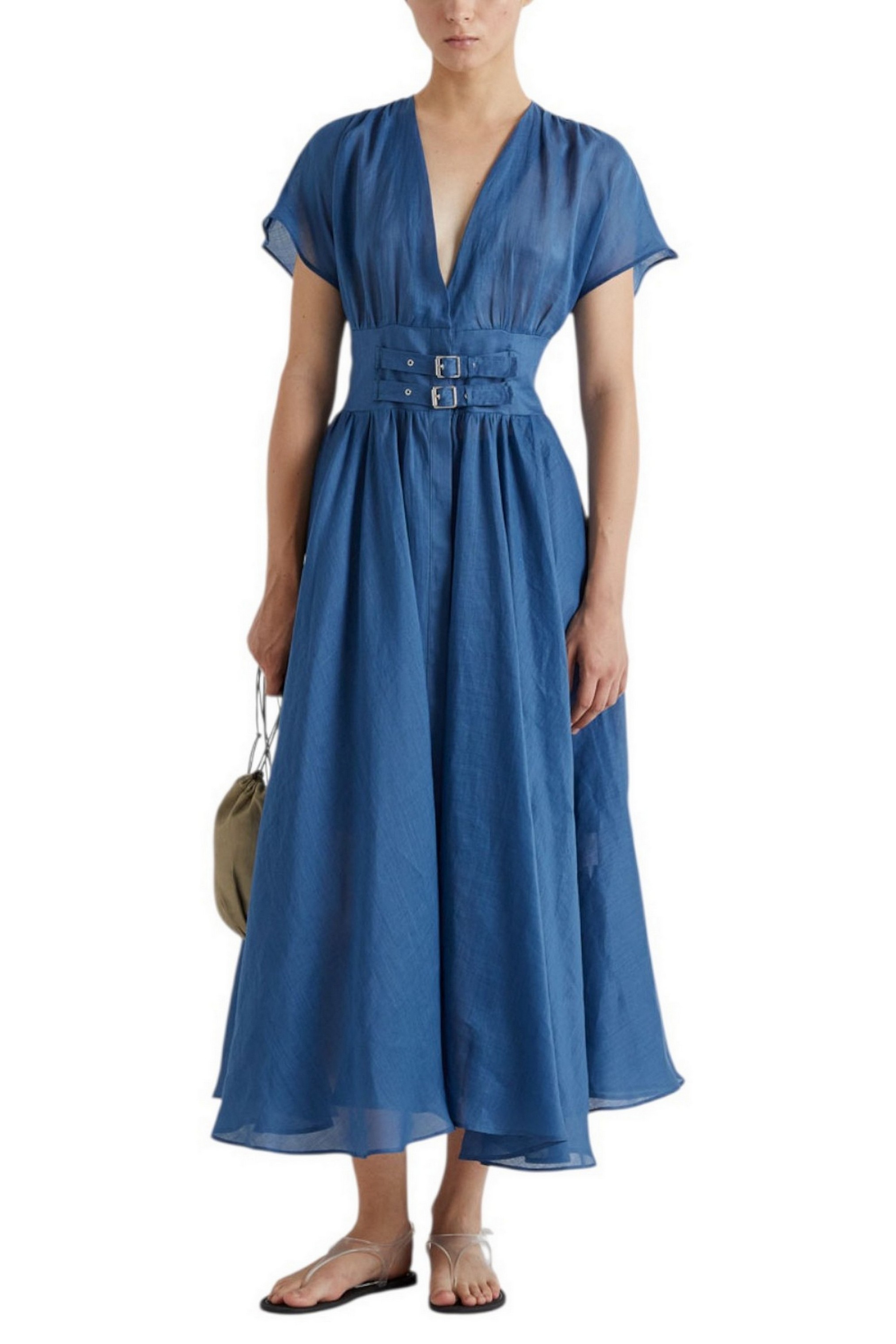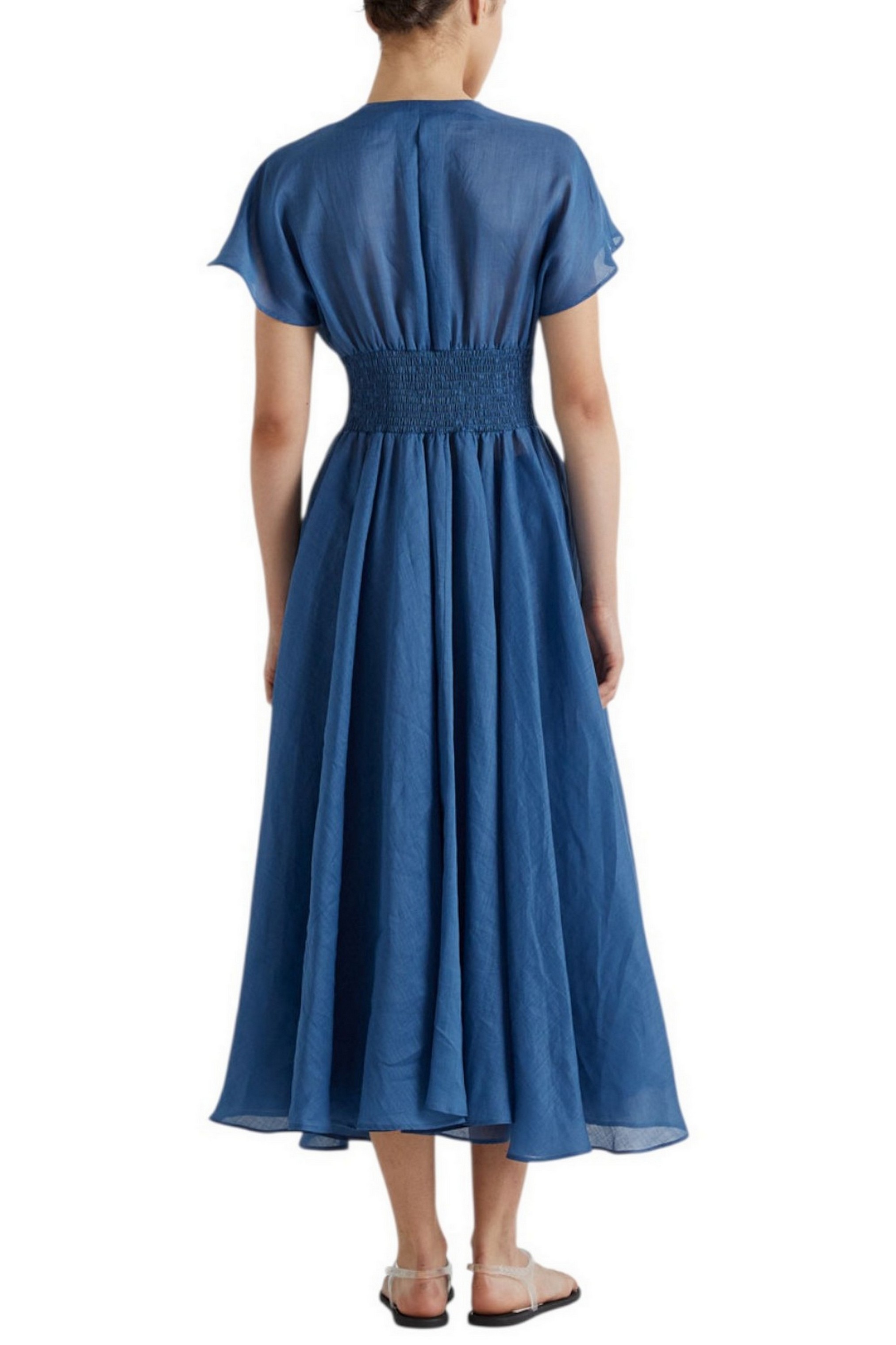 Abito di MEIMEIJ a ruota. Mezze maniche. Cinturinio sul davanti. Scollo a v. Chiusura con bottoni. Tasche. Vestibilità regolare. Composizione: 100% ramiè. Made in Italy.