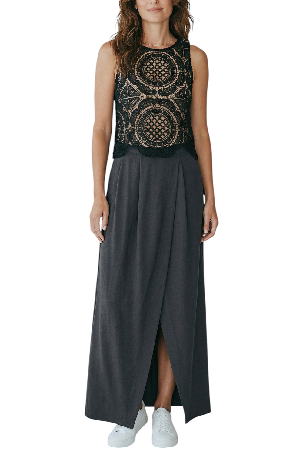 Gonna di Milva Mi. Dettagli pieghe. Spacco sul davanti. Chiusura con zip laterale. Tasche. Vestibilità regolare. Composizone: 60% viscosa, 40% lino. Made in Italy.
